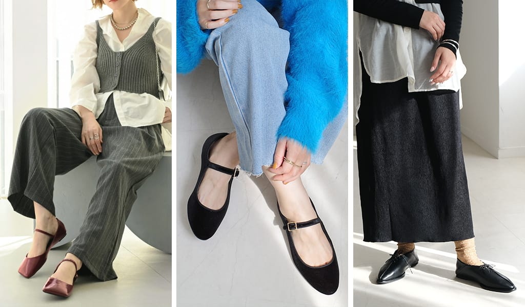 定番のフラットをアップデートしたい大人の女性に向けて、着こなしのヒントとともにご紹介します。