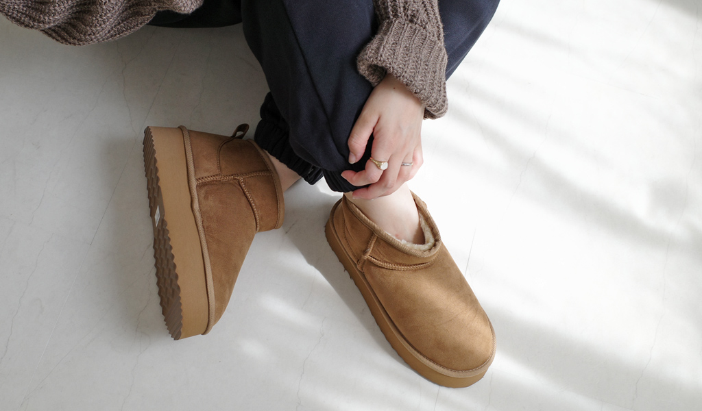 ニットやコートのボリュームに負けない、存在感のあるムートンブーツは主役級のアイテムです。