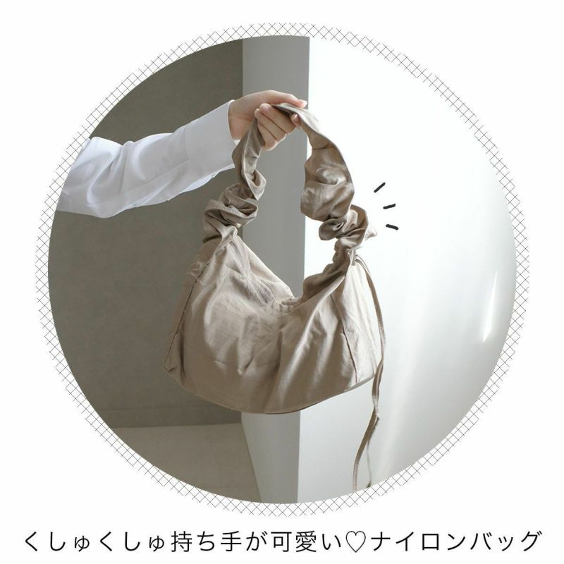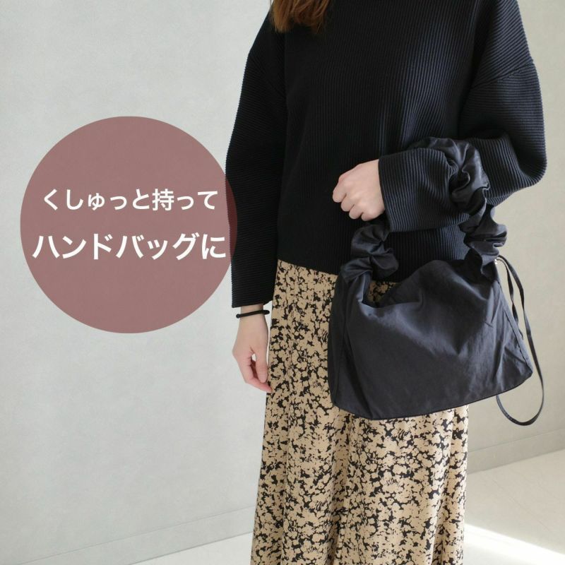 持ち手長さが変えられて色んな持ち方ができるくしゅくしゅバッグ