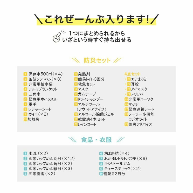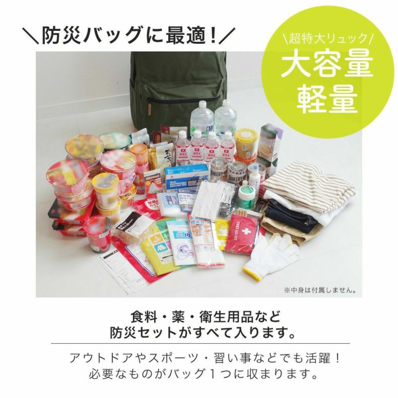 食料や衛生用品など、防災セットがすべて入る超特大リュック。