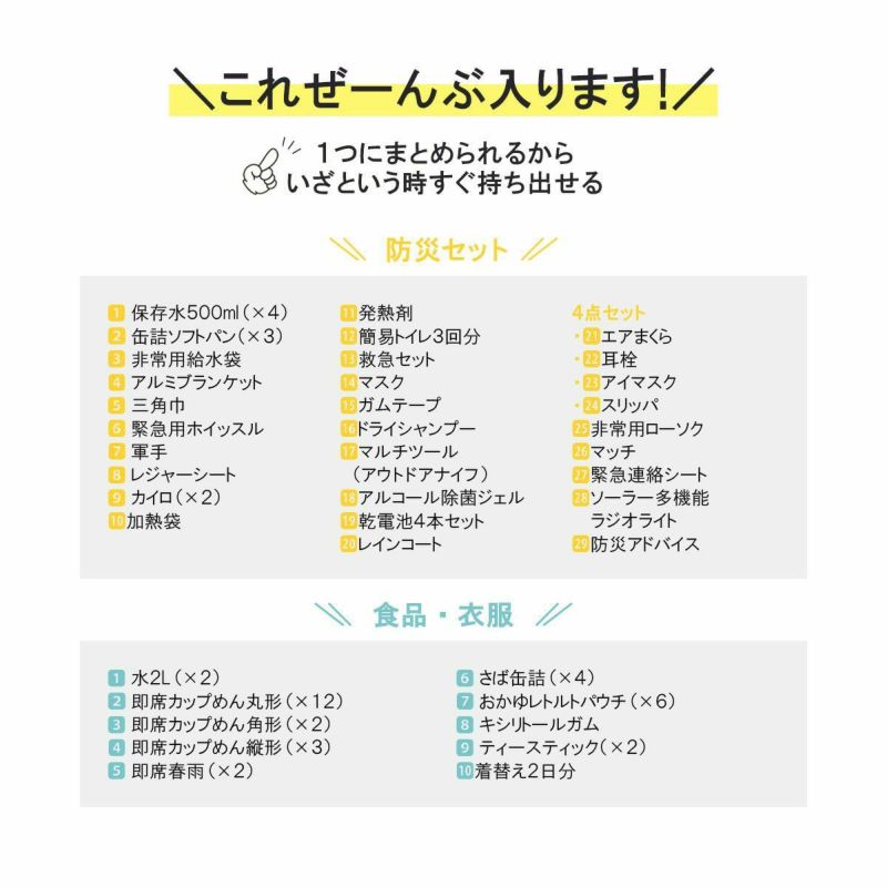 食料や衛生用品など、防災セットがすべて入る超特大リュック。