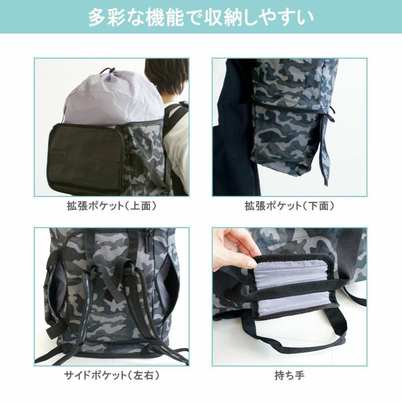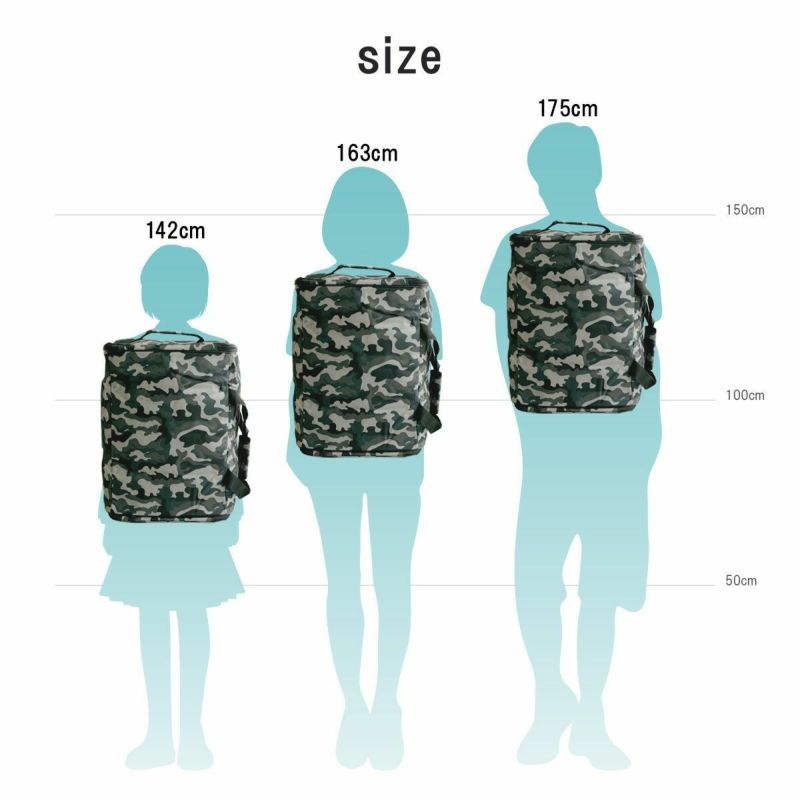 ■サイズ: 閉口時:W37×H44×D25cm 拡張時:H69cm(上部チャックを閉めず巾着を外に出した状態でH90cm程度)