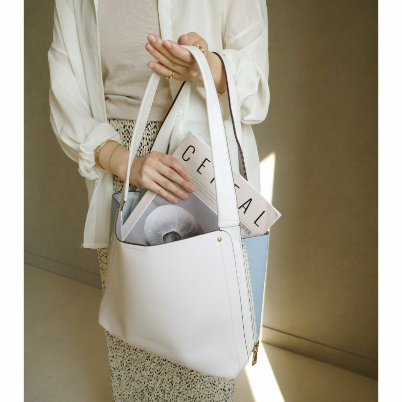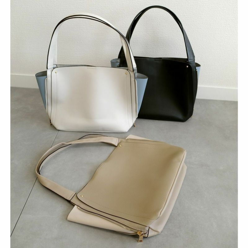 サイドのファスナーを開けるとフォルムが変わり、バイカラーでオシャレ度アップ!
