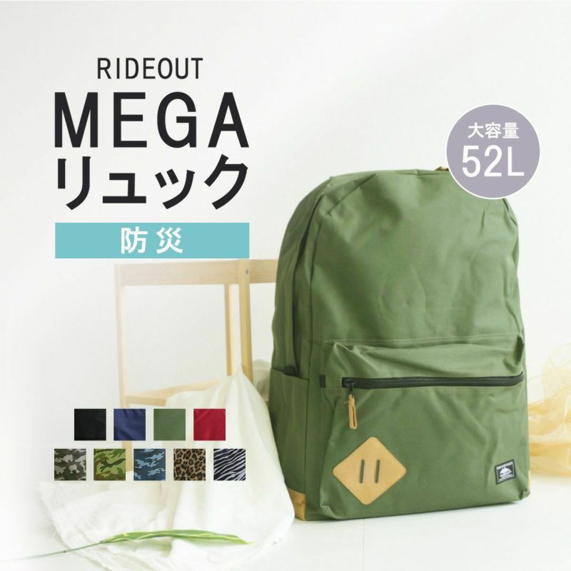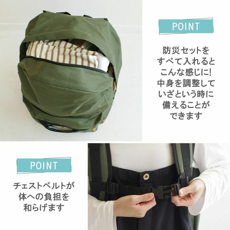 食料や衛生用品など、防災セットがすべて入る超特大リュック。