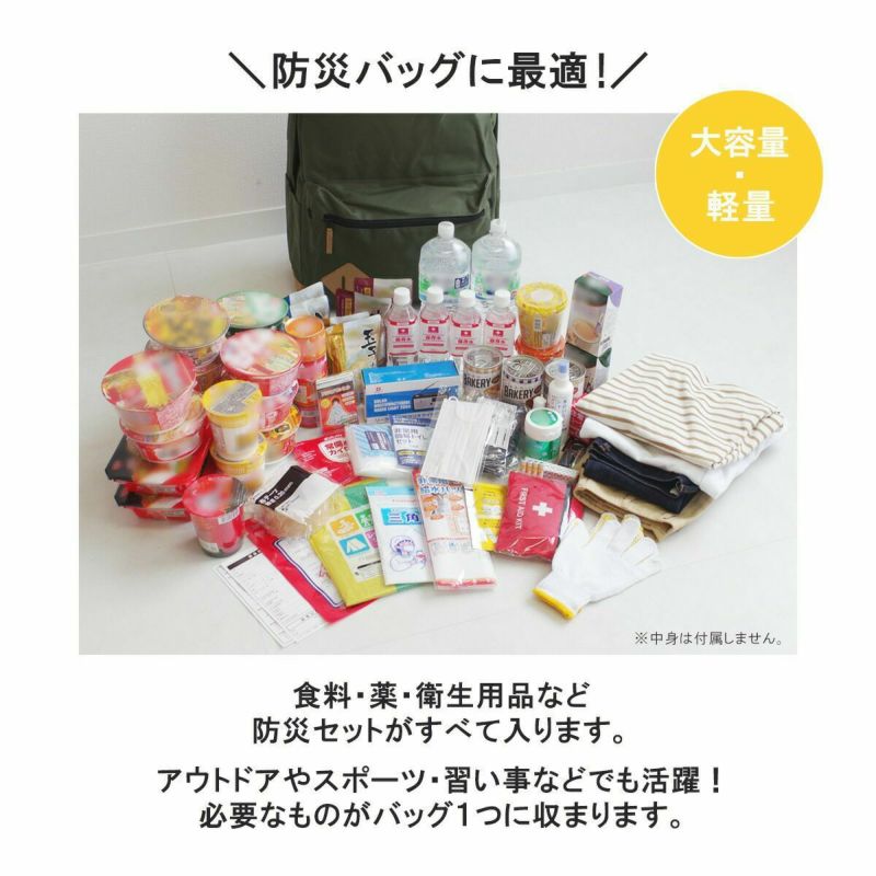 大容量・軽量なので、いざという時にすぐ持ち出せます。必要なものがバッグ一つに収まるので、アウトドアやスポーツ、習い事などでも活躍!