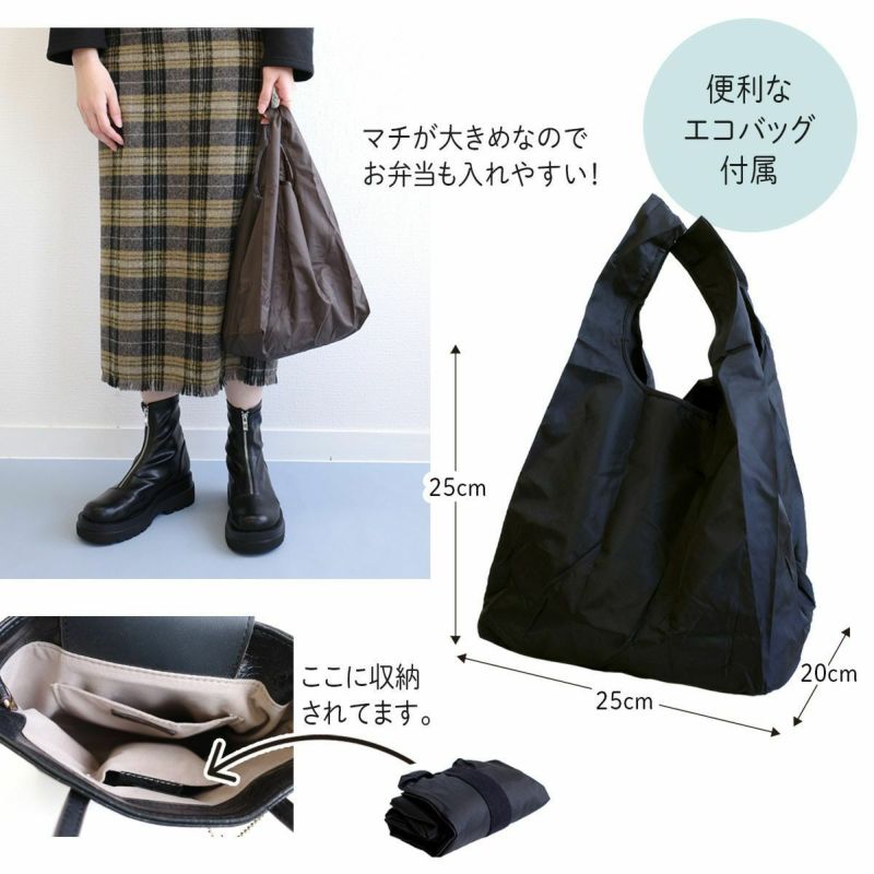 ちょっとしたお買い物に便利!コンビニサイズのエコバッグがセットされているので、うっかり忘れることもなく安心。