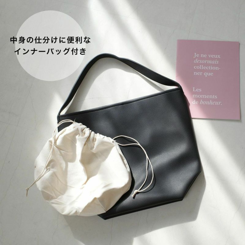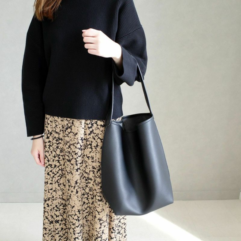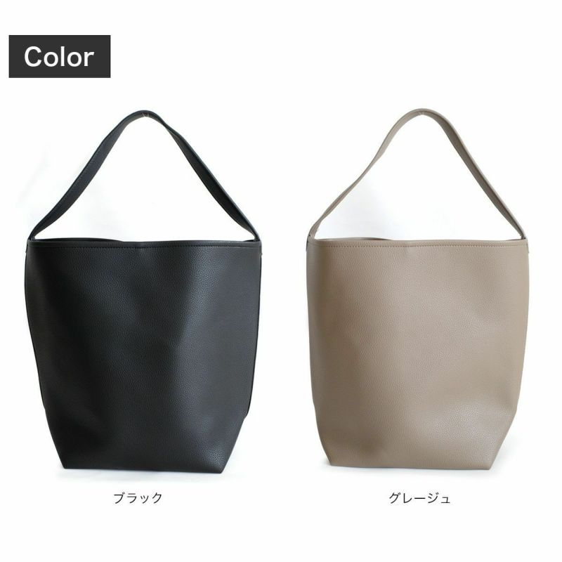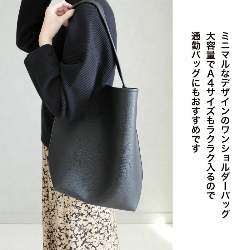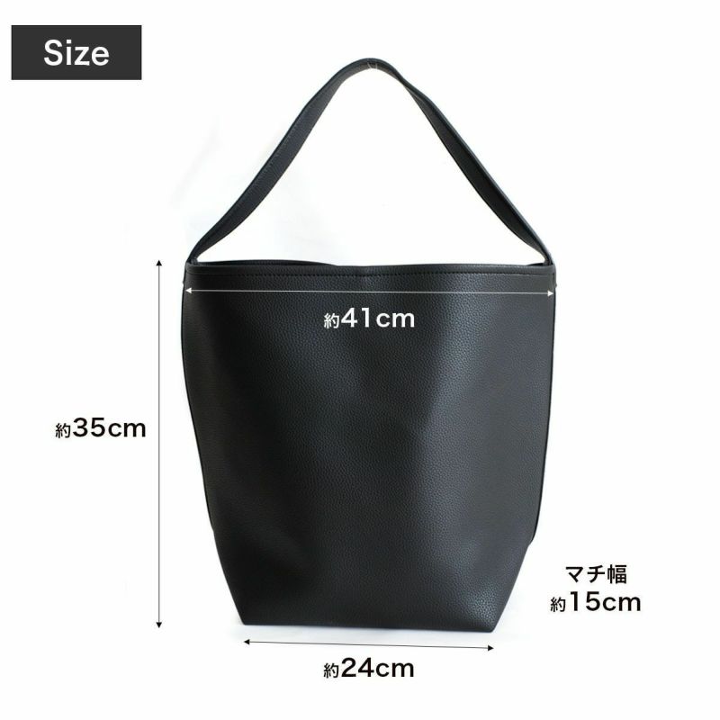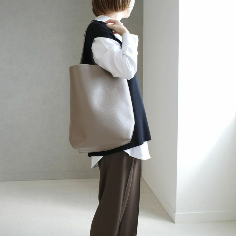A4サイズもラクラク入るサイズ感で、通勤バッグにもおすすめです。シボ感のある高級感たっぷりなフェイクレザーを使用し、シンプルな大人コーデに馴染みます。