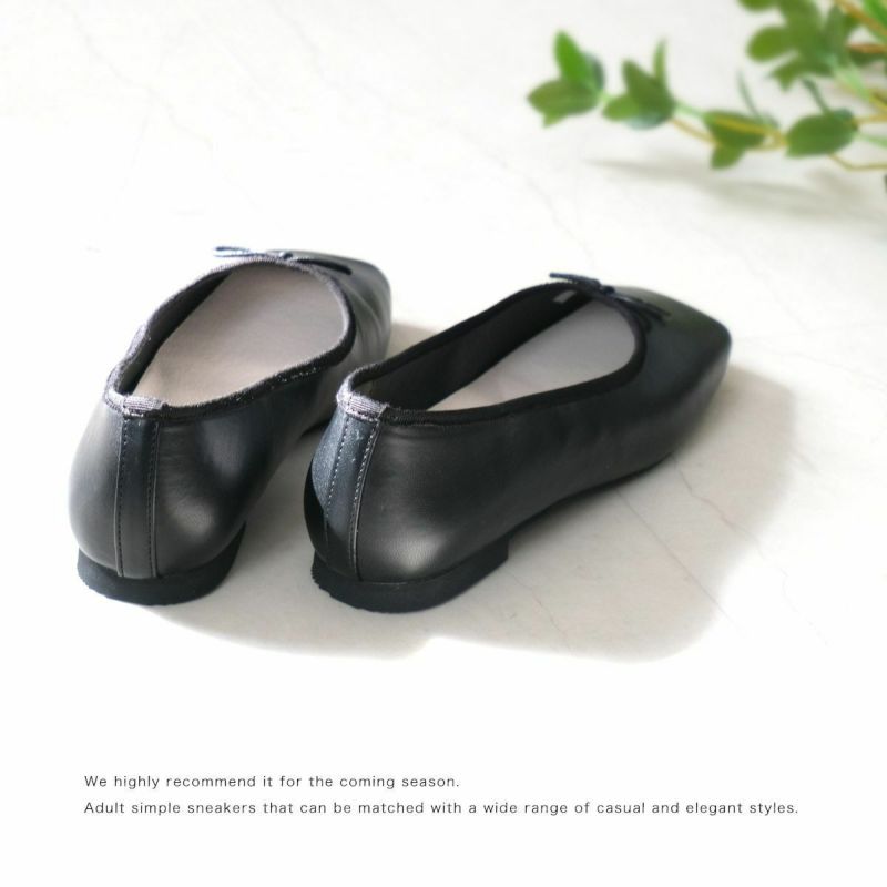 急な雨でも安心な撥水加工を施したスクエアトゥバレエシューズ