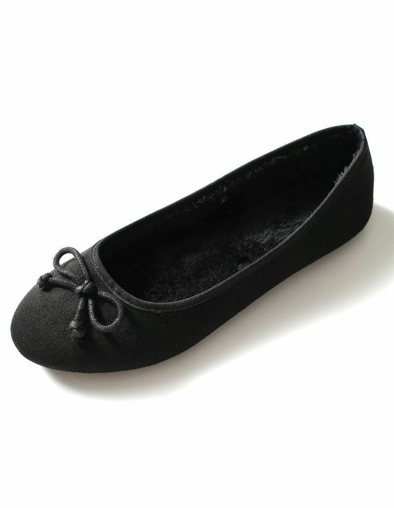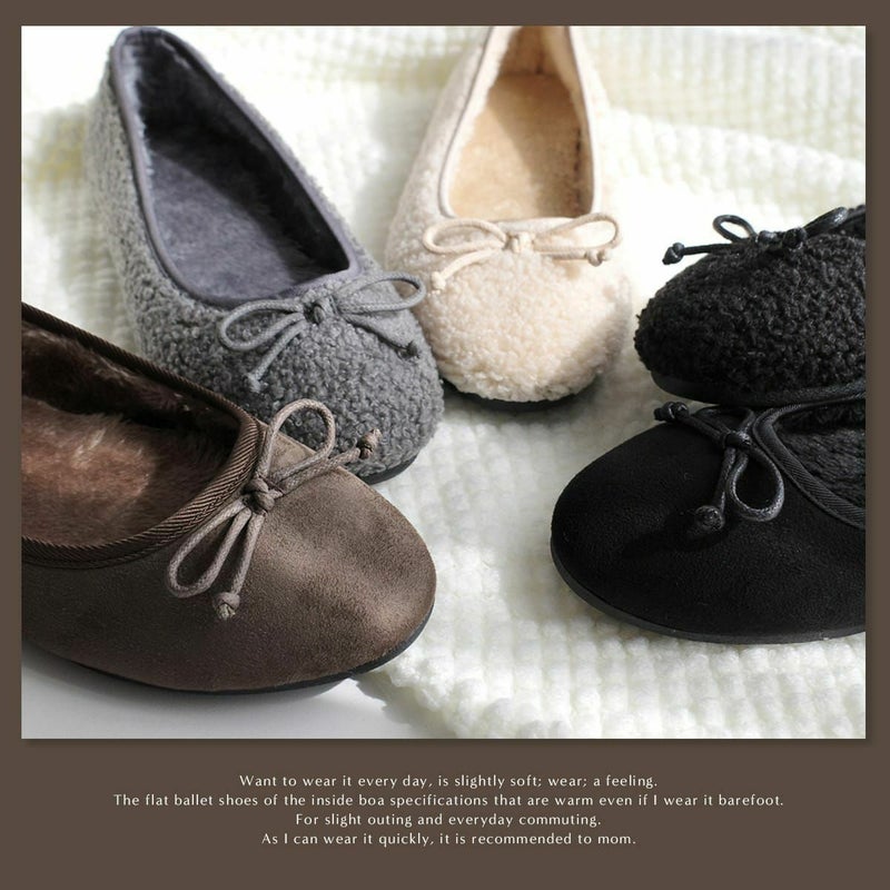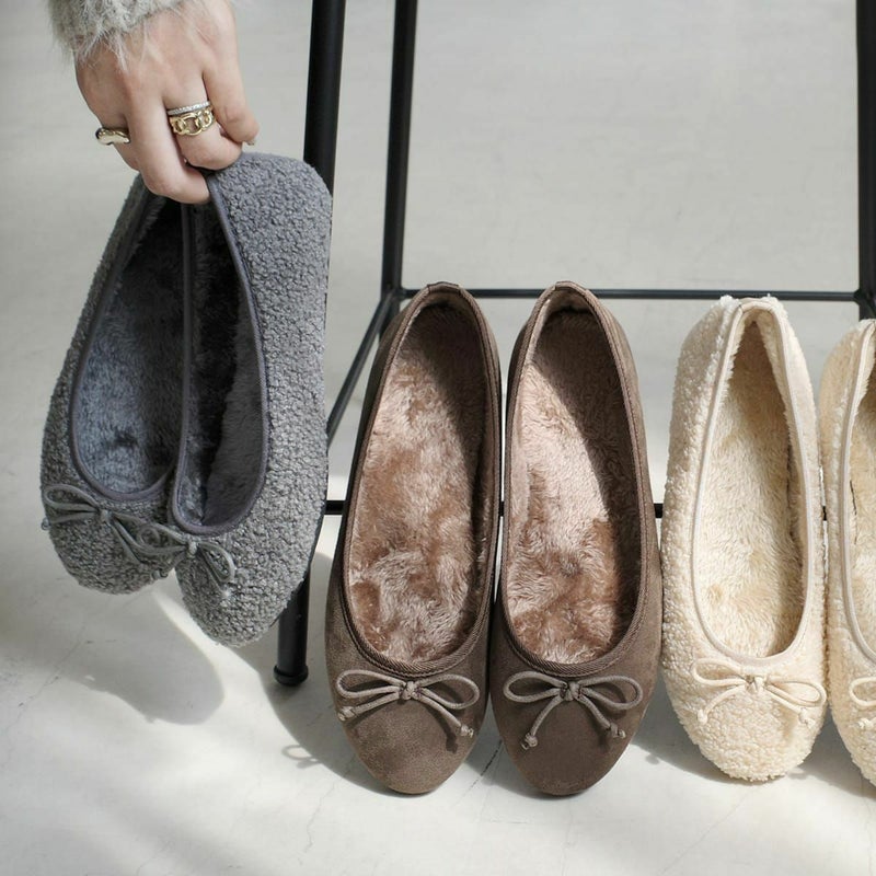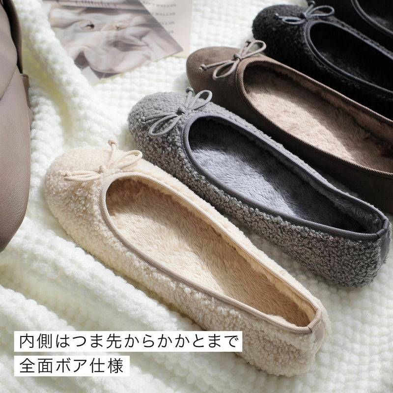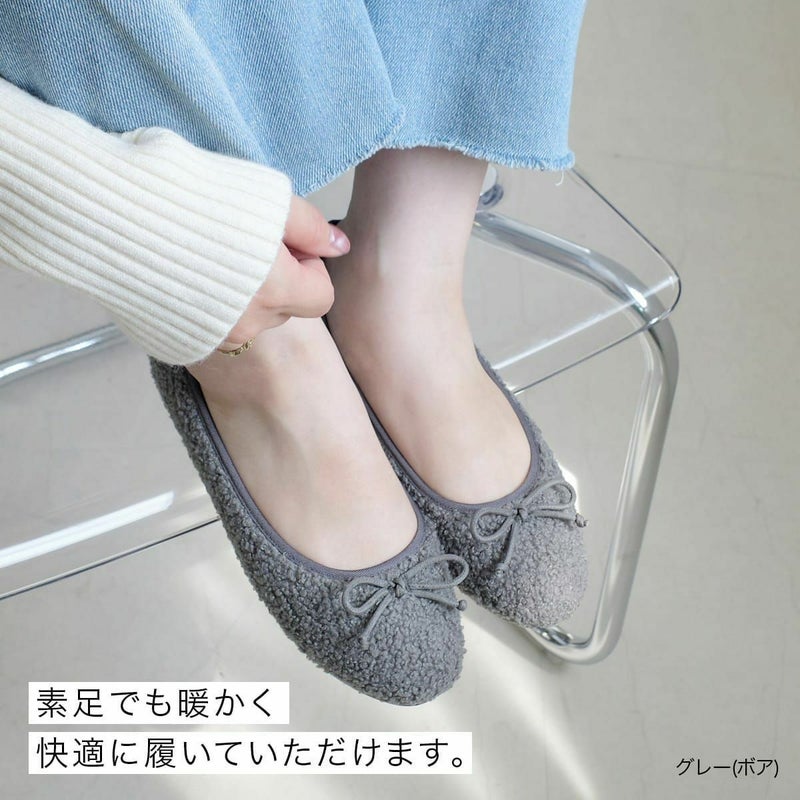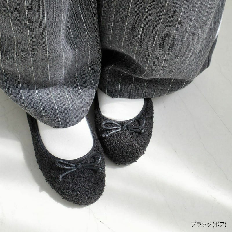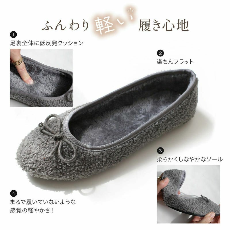 ボアバレエシューズバレエパンプスファーあったかリボンモチーフ レディース