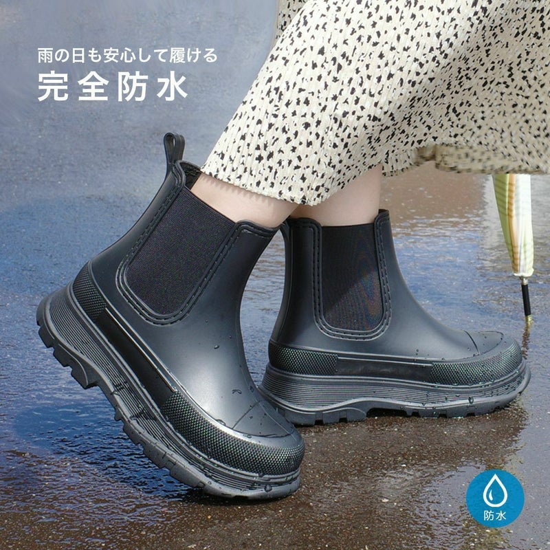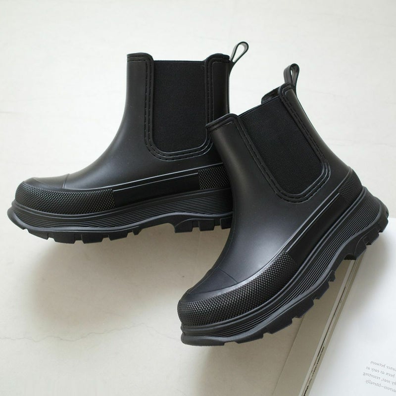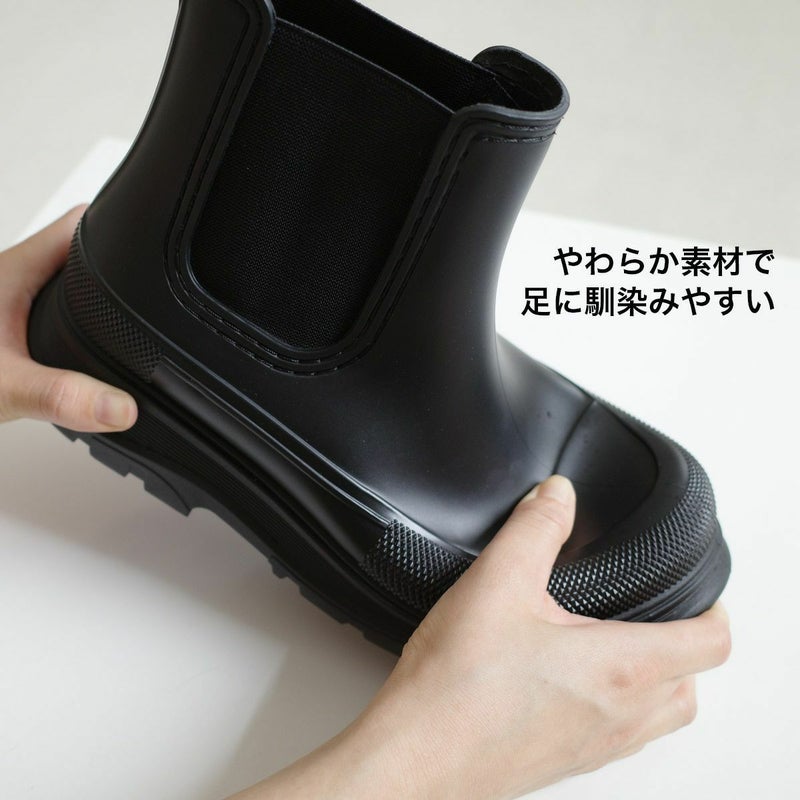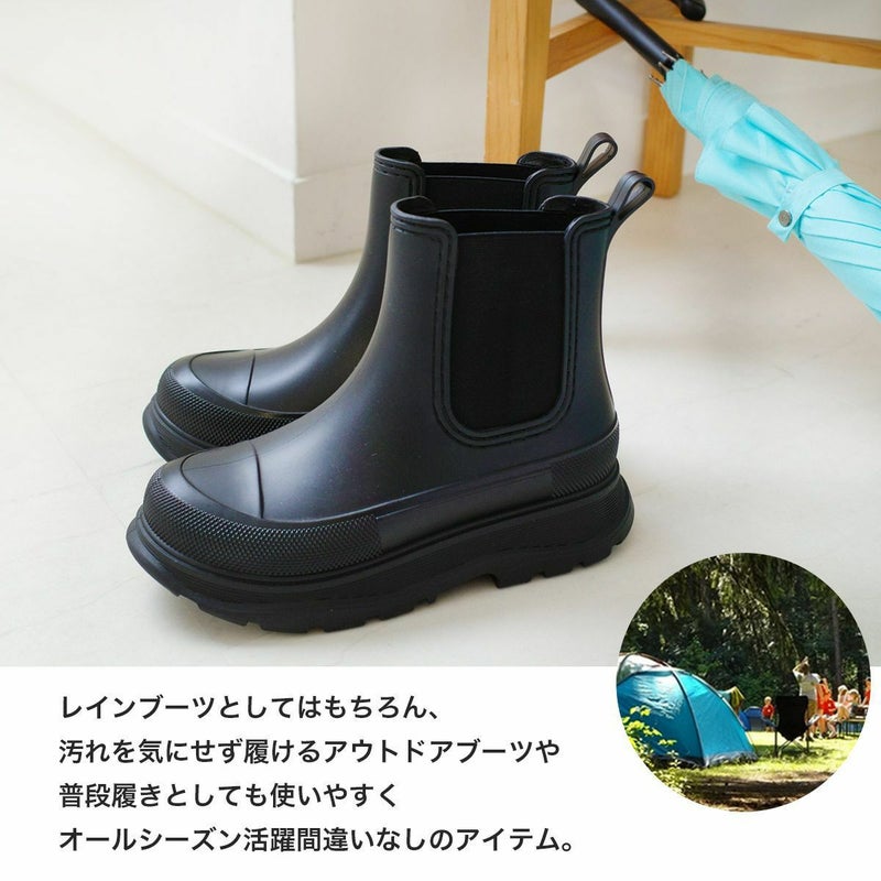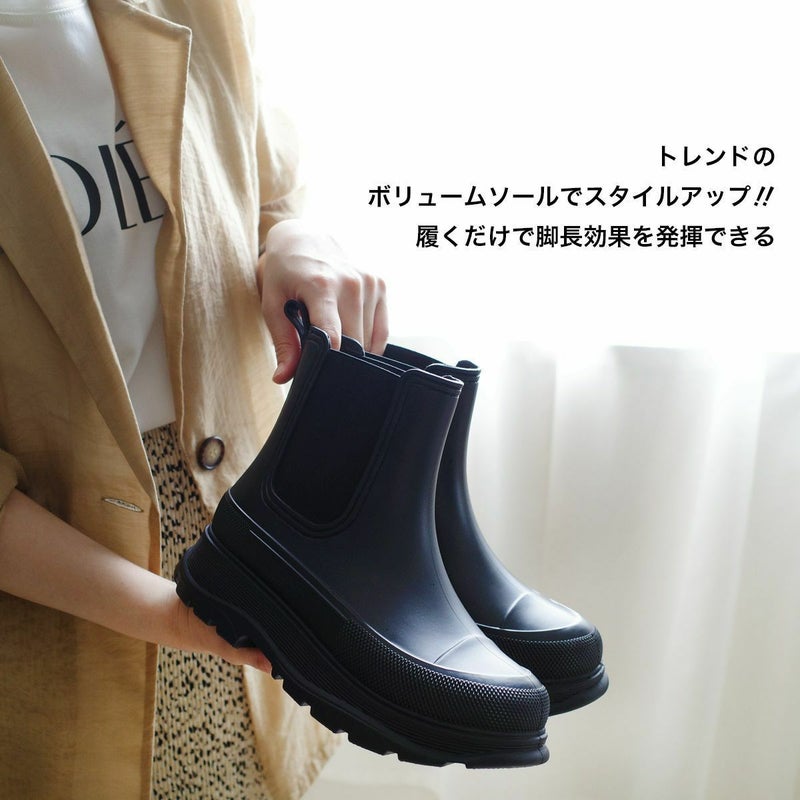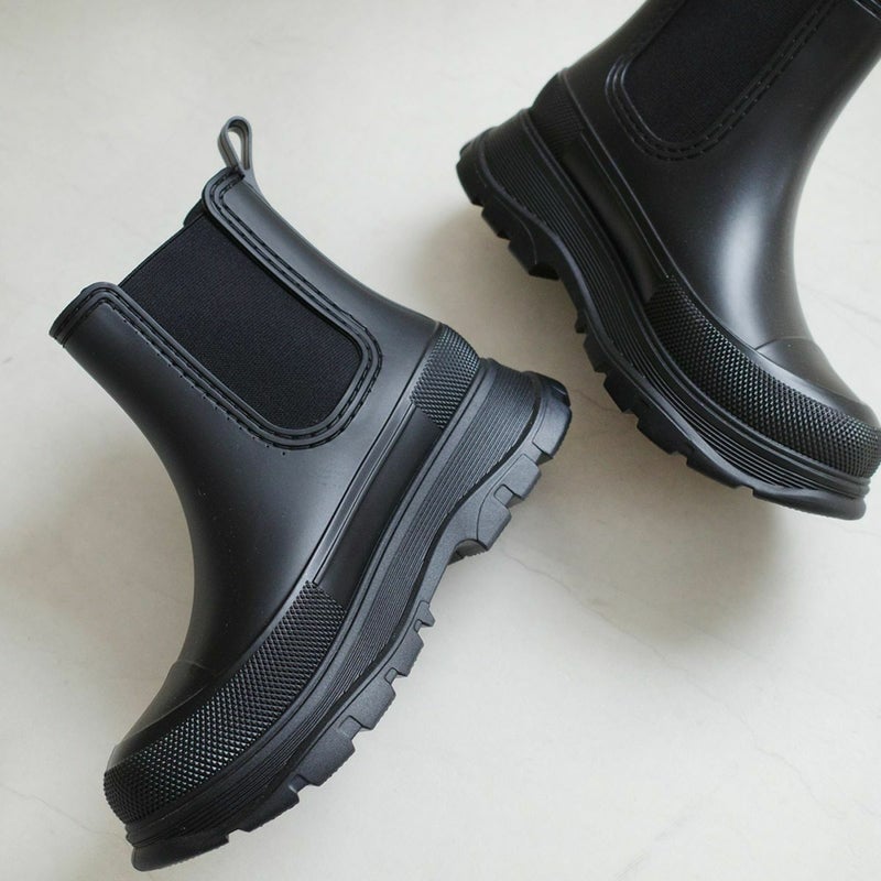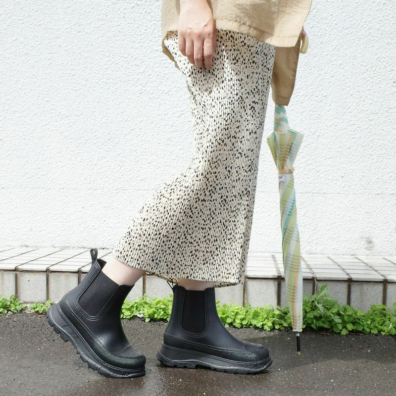旬なスタイリングを叶える雨天兼用サイドゴア厚底ブーツ。