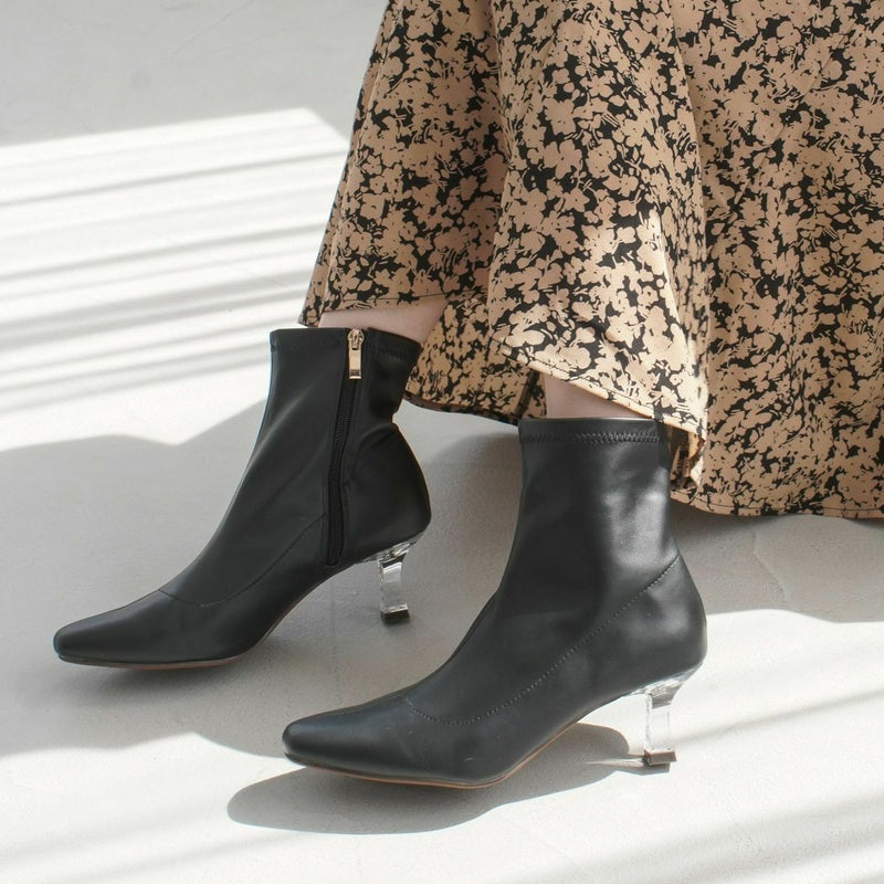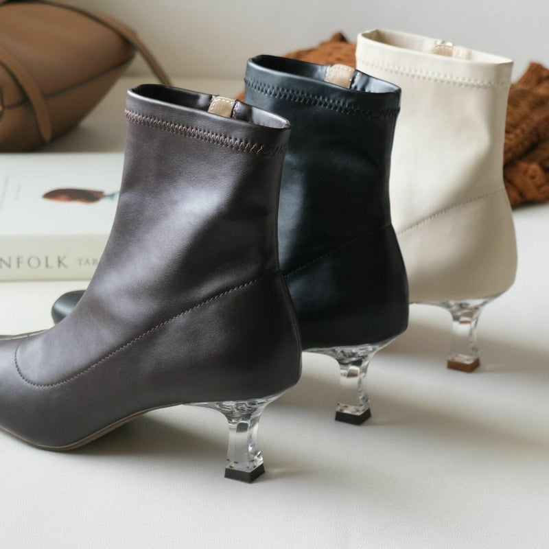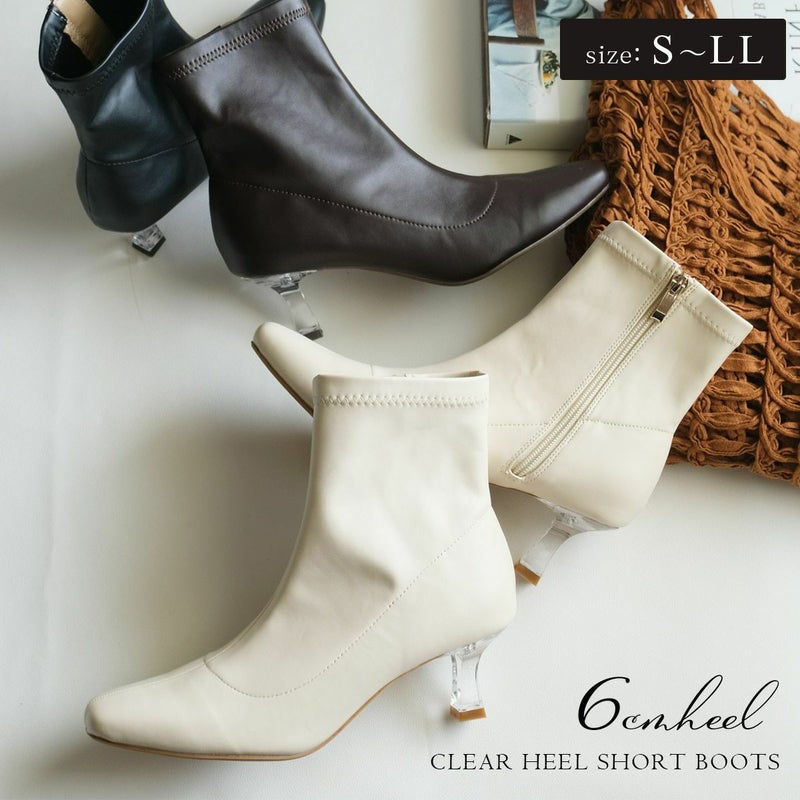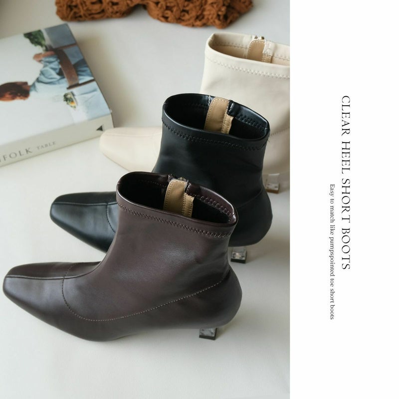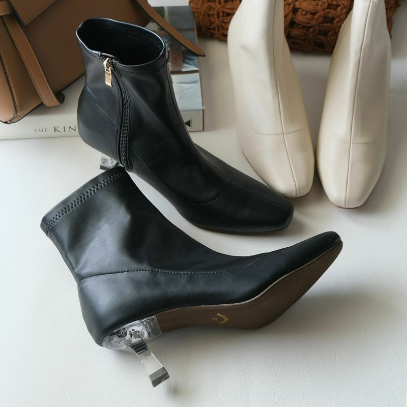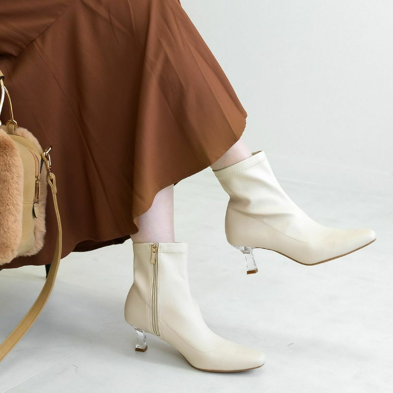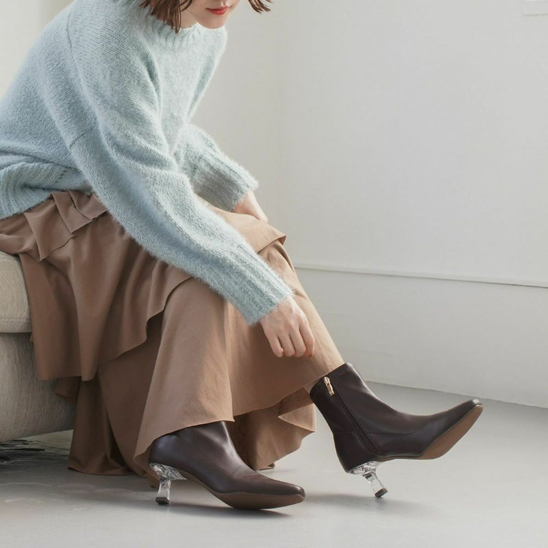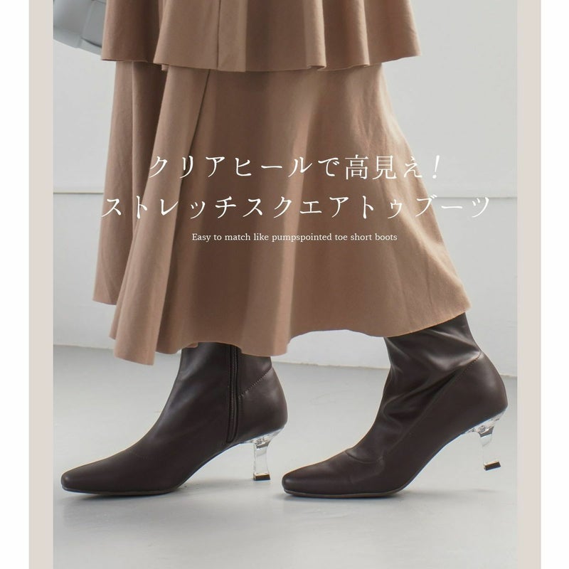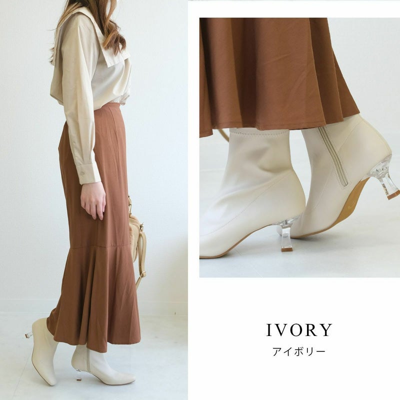 【在庫限り!特別価格!】クリアヒールブーツスクエアトゥ レディース