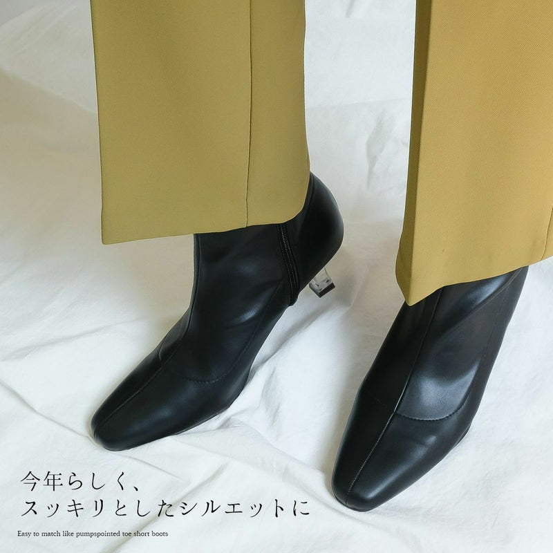 スクエアトゥが大人っぽくトレンド感のあるコーデに仕上げてくれます