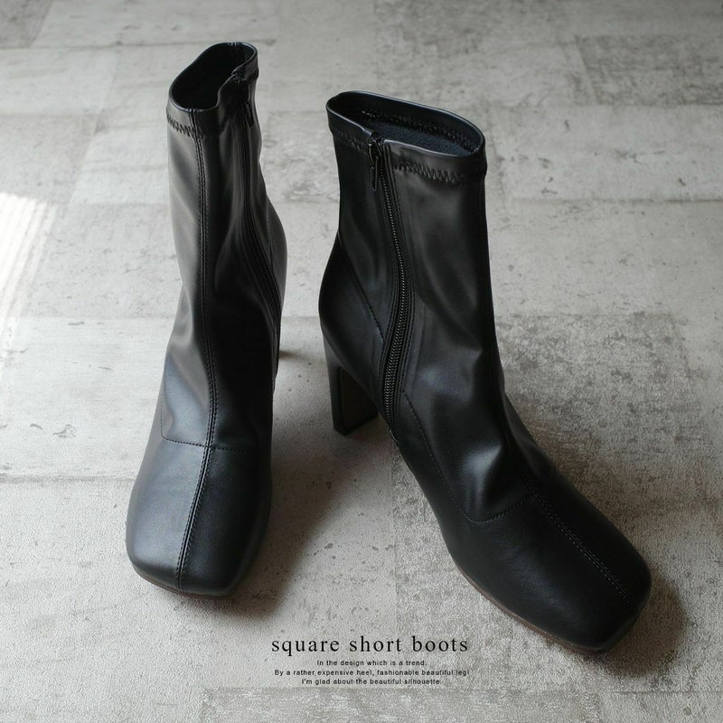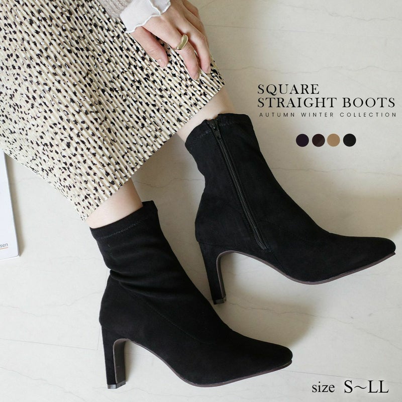 【返品交換不可】【在庫限り!特別価格!】斜めスクエアトゥブーツストレートヒール レディース