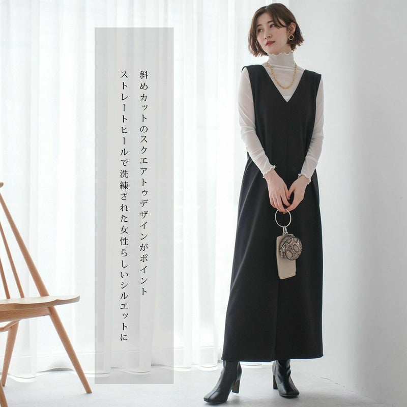 シンプルで斜めカットのスクエアトゥデザインがポイント!