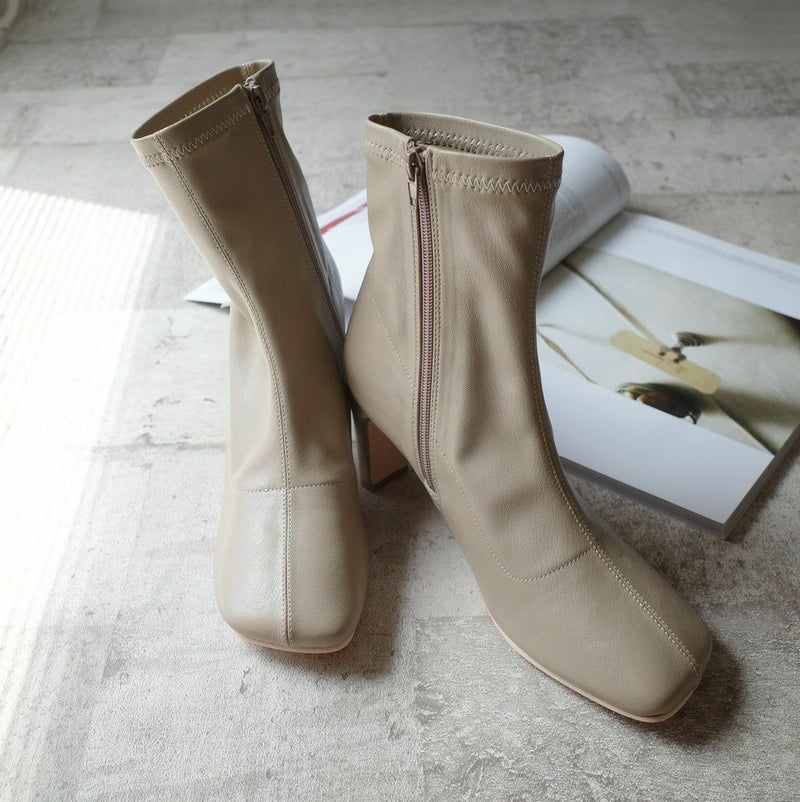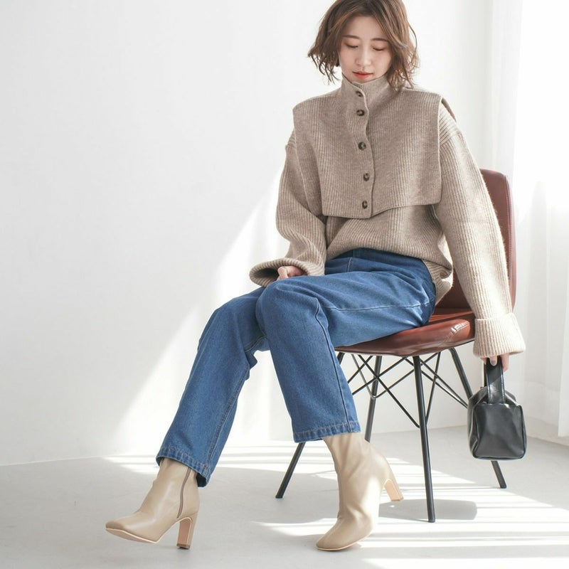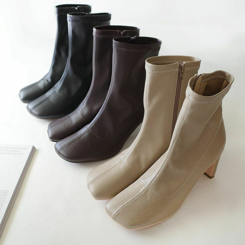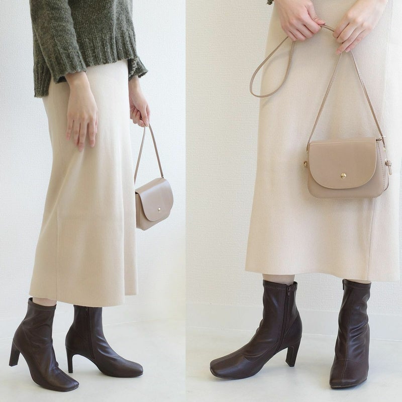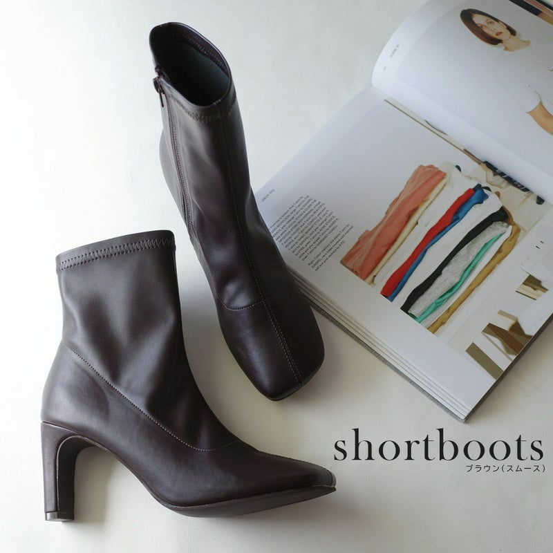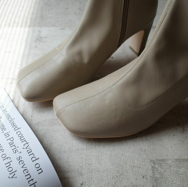 ストレッチのきいた生地が柔らかく足にほどよくフィットして細見え効果バツグン!安定感がありつつおしゃれに見える、スタイリッシュなヒールデザイン!