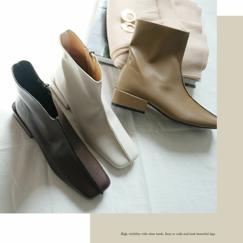 やわらかなアッパーで足に優しいスクエアトゥショートブーツ