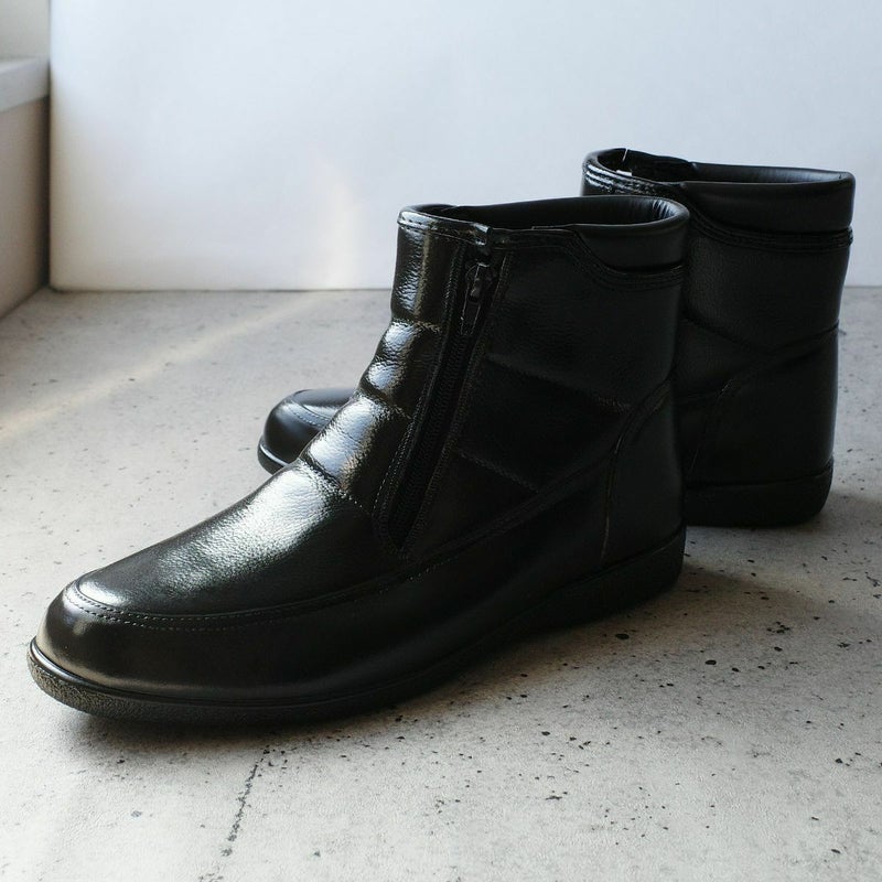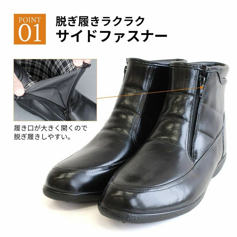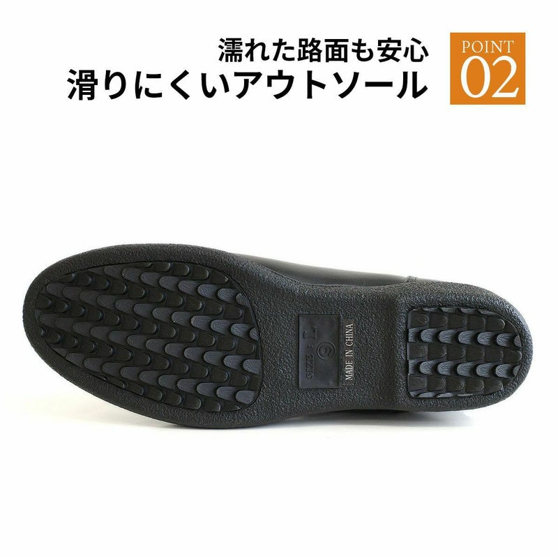 通勤にもカジュアルにも使えるシックなデザイン。サイドファスナー付きで履き口が大きく開くので着脱ラクラク!
