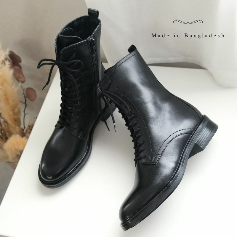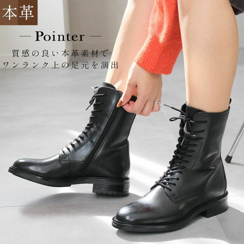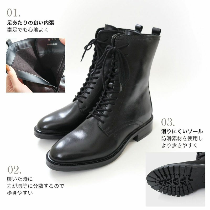 本革レースアップ 編み上げ ブーツ レディース