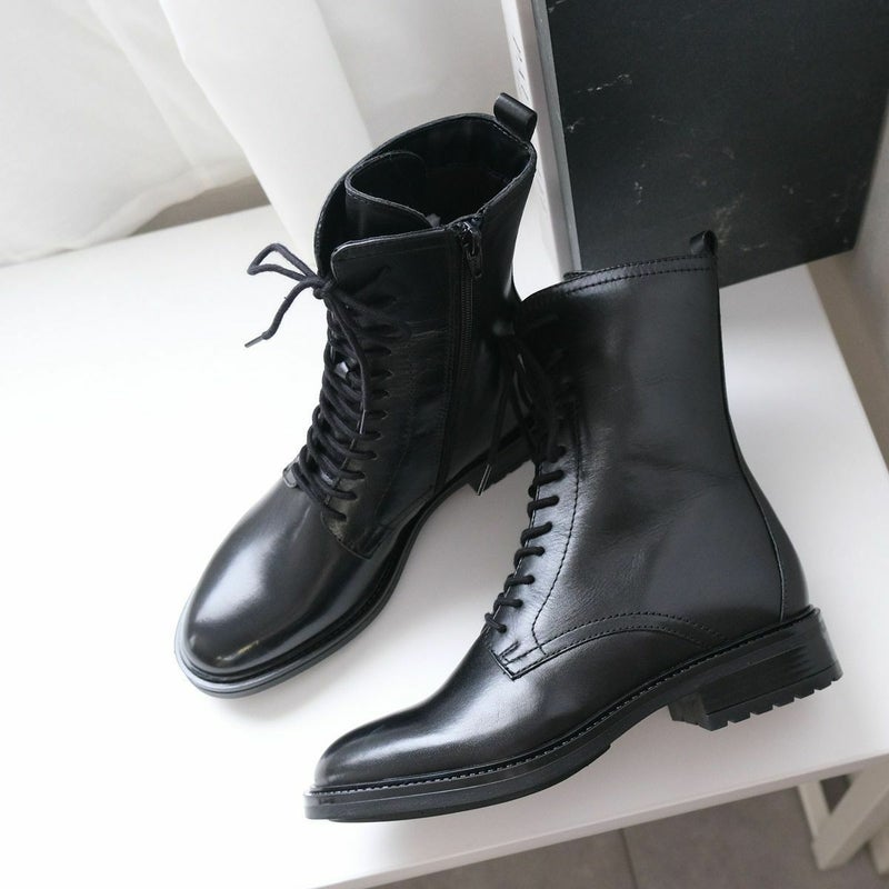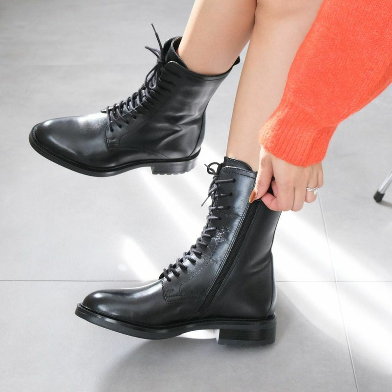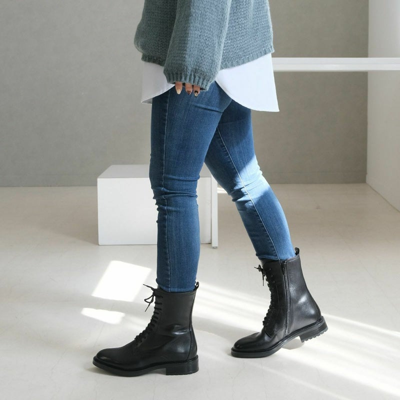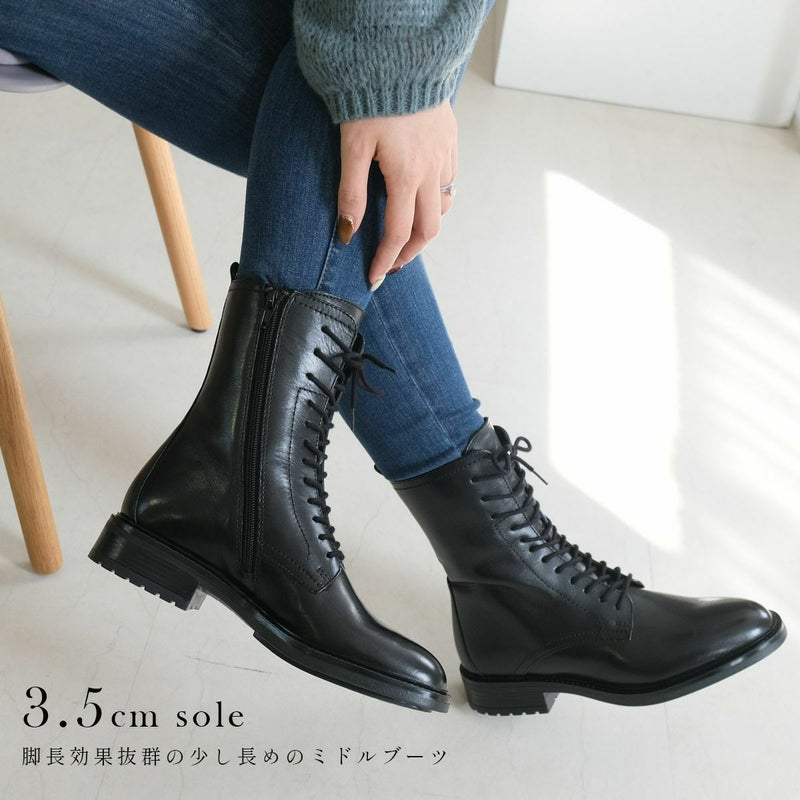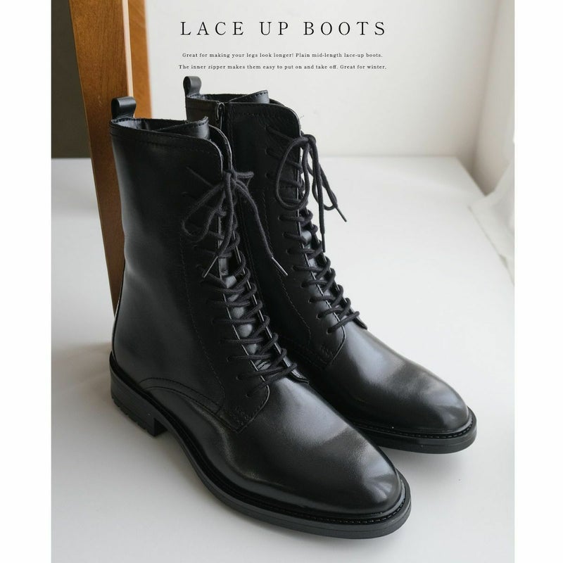 脚長効果バツグン!プレーンなミドル丈レースアップブーツ