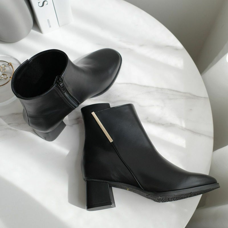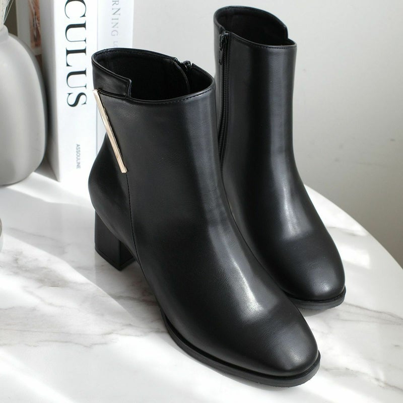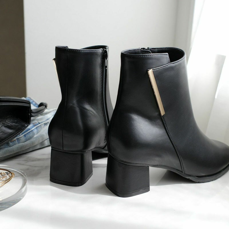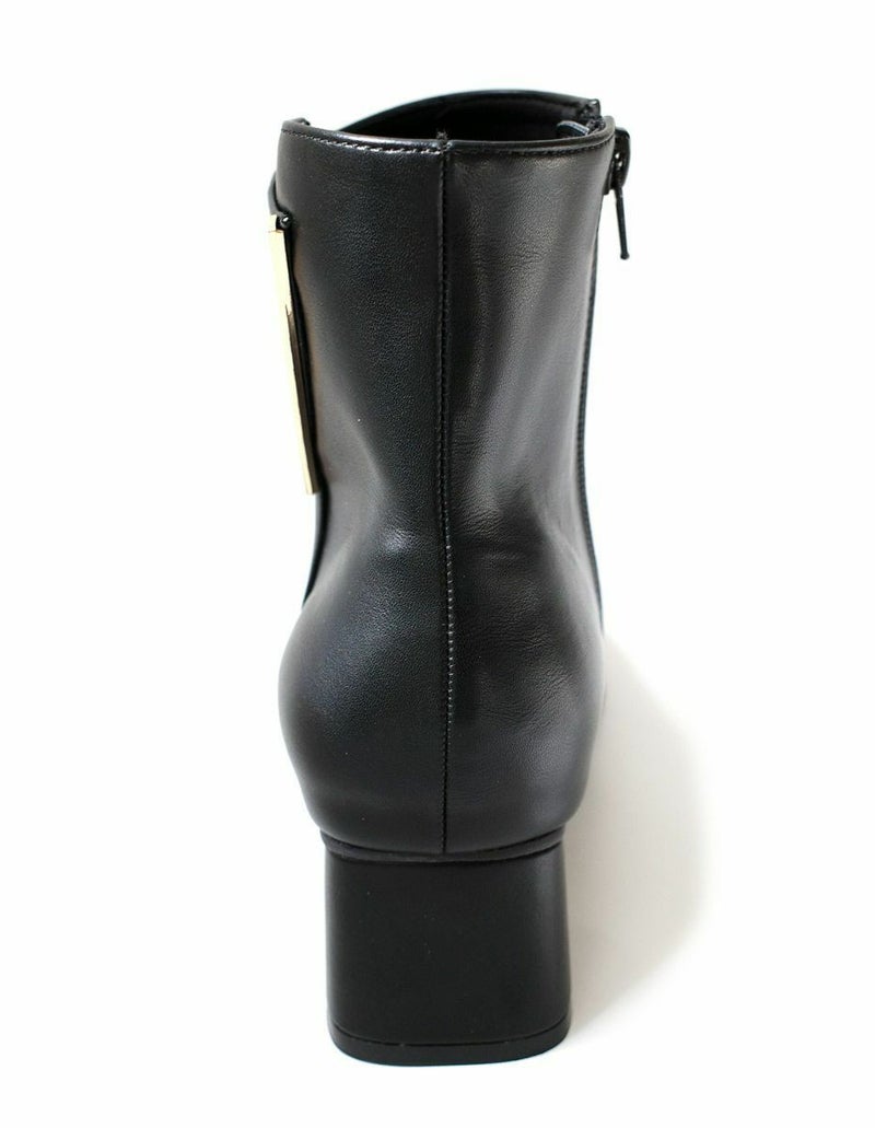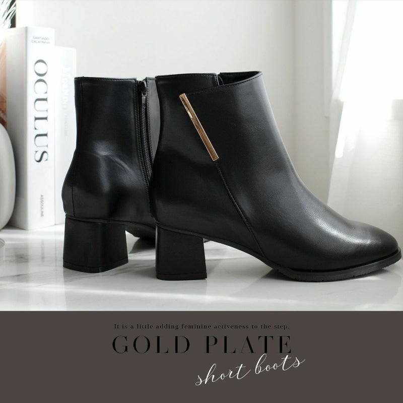 フロント部分を一枚皮で仕上げることで、トゥの曲線をより美しく見せ、エレガントでリュクスな雰囲気を演出します。また、サイドに斜めに配した華奢なゴールドプレートは、足元に女性らしい華やかさをプラスします。