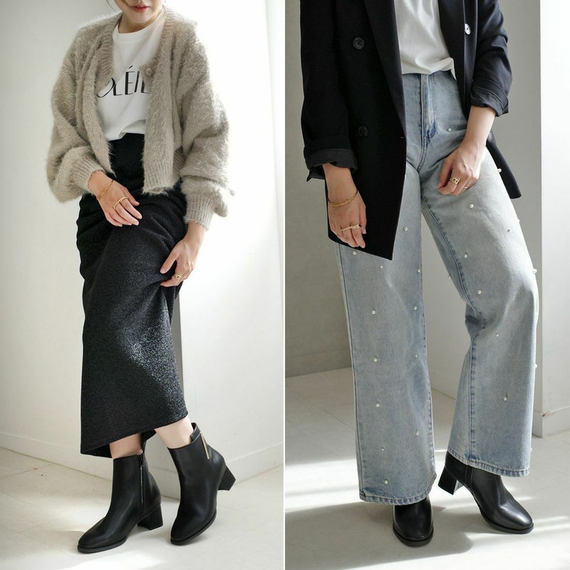 細みの縦ラインが強調され、脚長効果も期待できます。