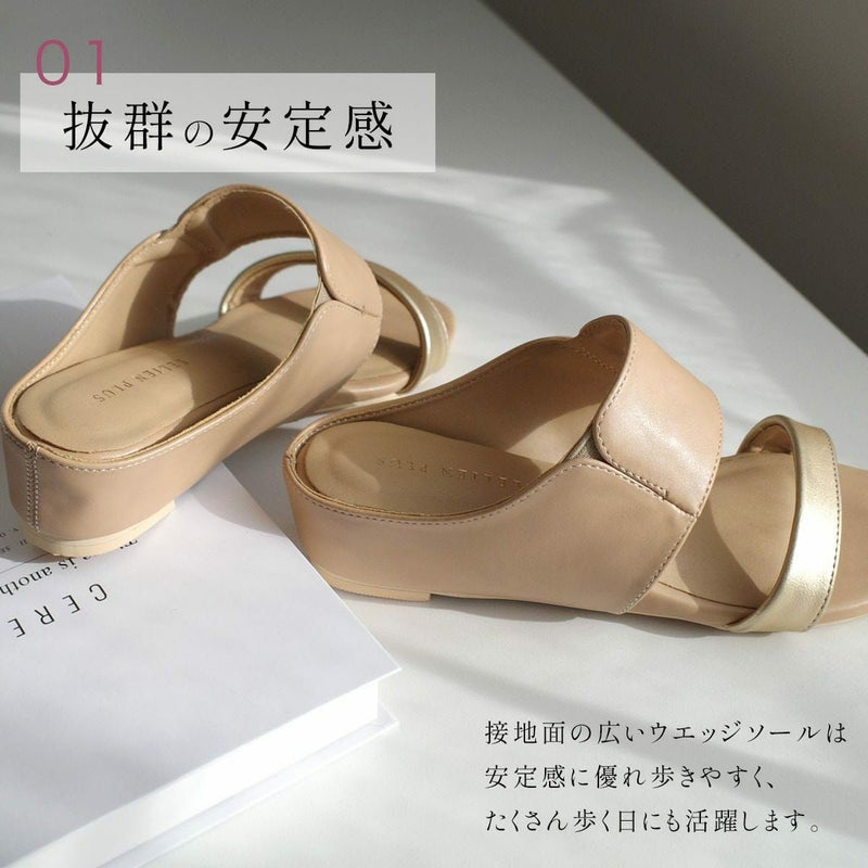 4.5cmの控えめなウェッジソールで美脚見えかつ、安定感もあるので歩きやすさも叶えてくれます。ふかふかなインソールクッションと足に馴染みやすい柔らかなアッパー素材で、抜群な履き心地も人気のヒミツ。