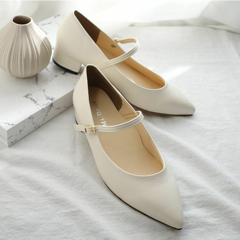 【在庫限り!特別価格!】ストラップポインテッドトゥパンプスメリージェーン靴 レディース