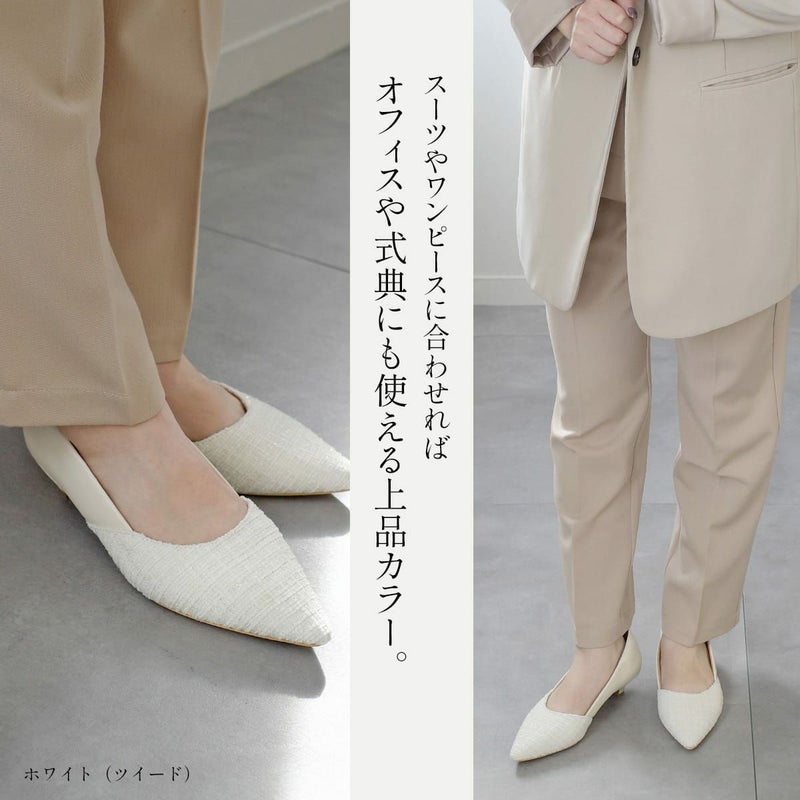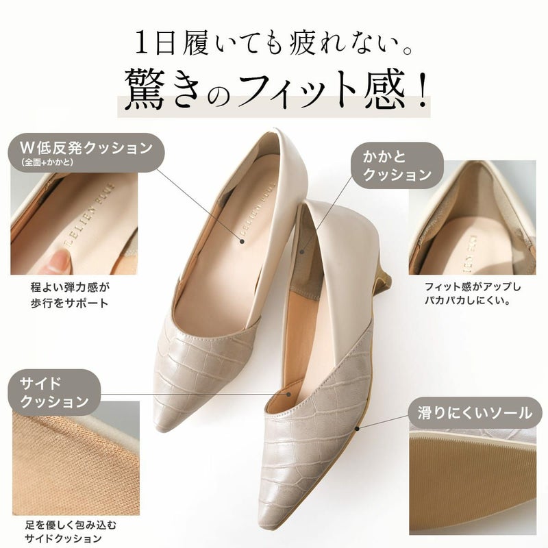 斜めのカットで美脚ラインを演出!低めのヒールで歩きやすくフィット感のあるふかふかの履き心地