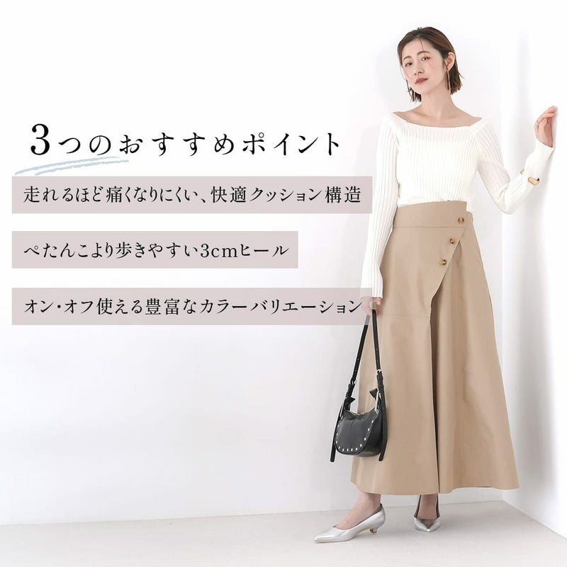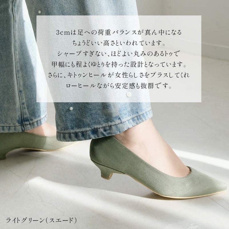 フラットシューズより脚をキレイに見せてくれながら、楽に履ける3cmヒールパンプス
