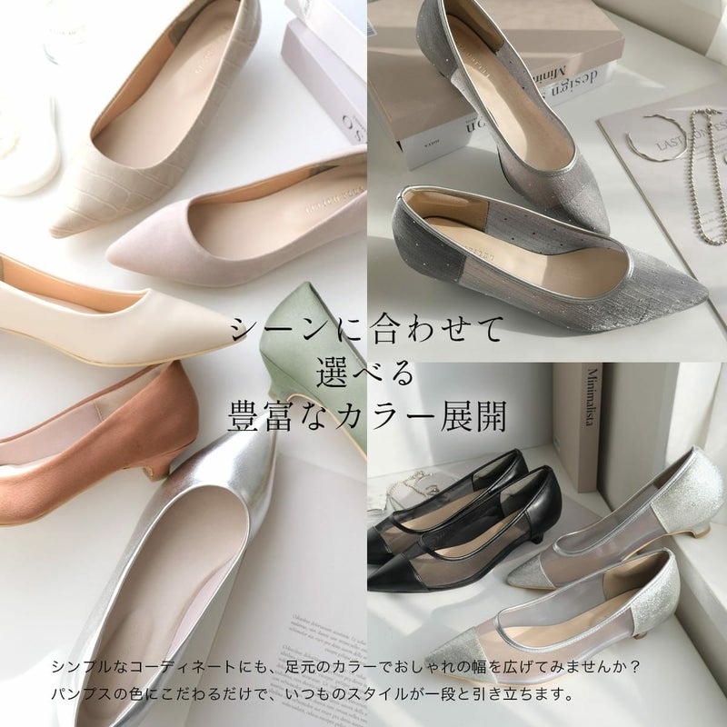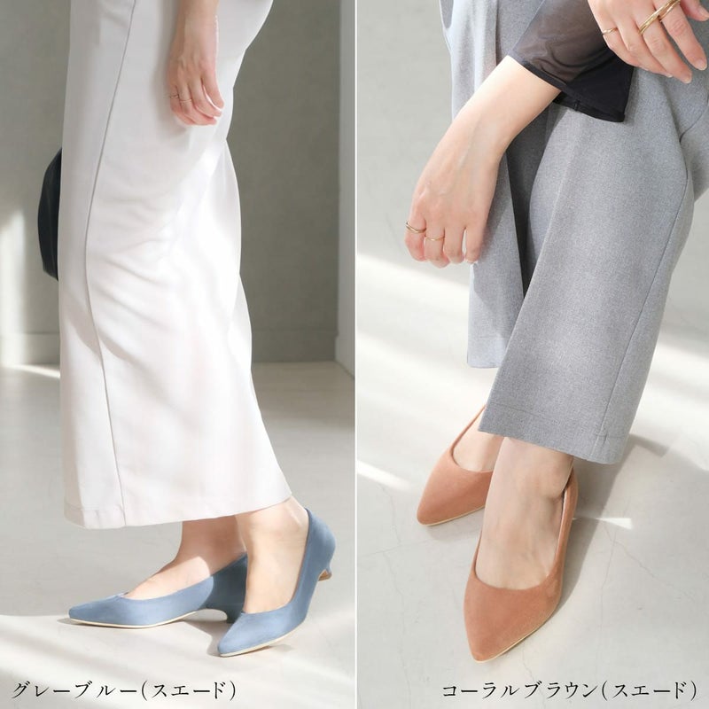 ローヒールでありながらポインテッドで大人っぽくきれいめなフォルムで美脚に見せてくれます。