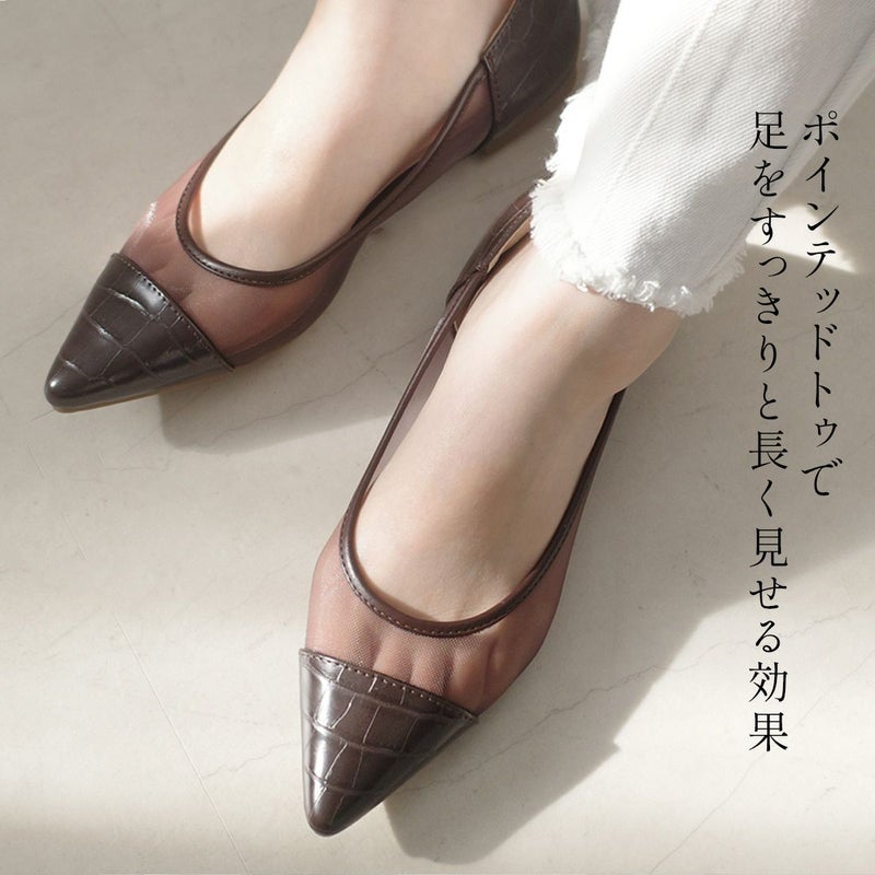 • 素材によって足入れ感が異なる場合がございます。スエードは足に馴染みやすくなっております。エナメル・チュールは履き始め小さく感じられる場合がございます。