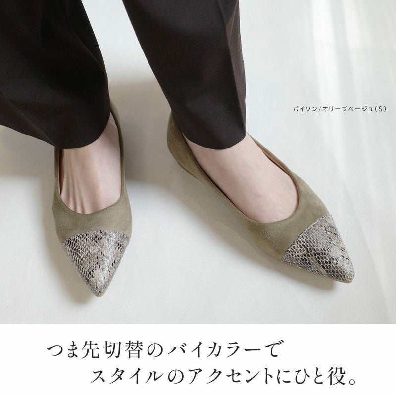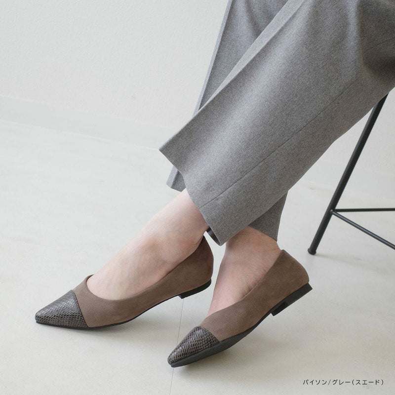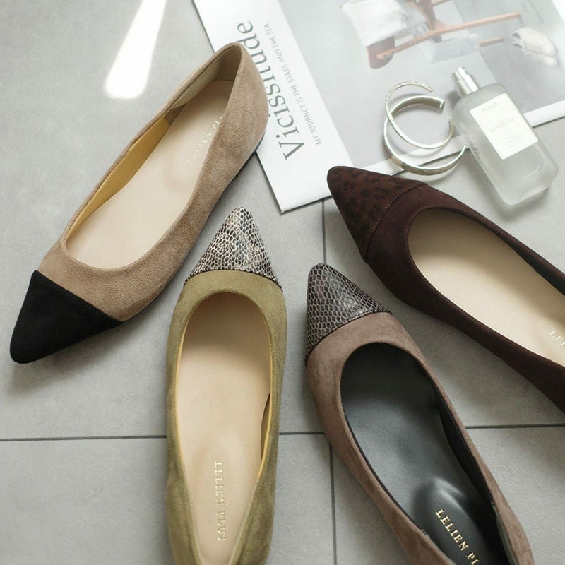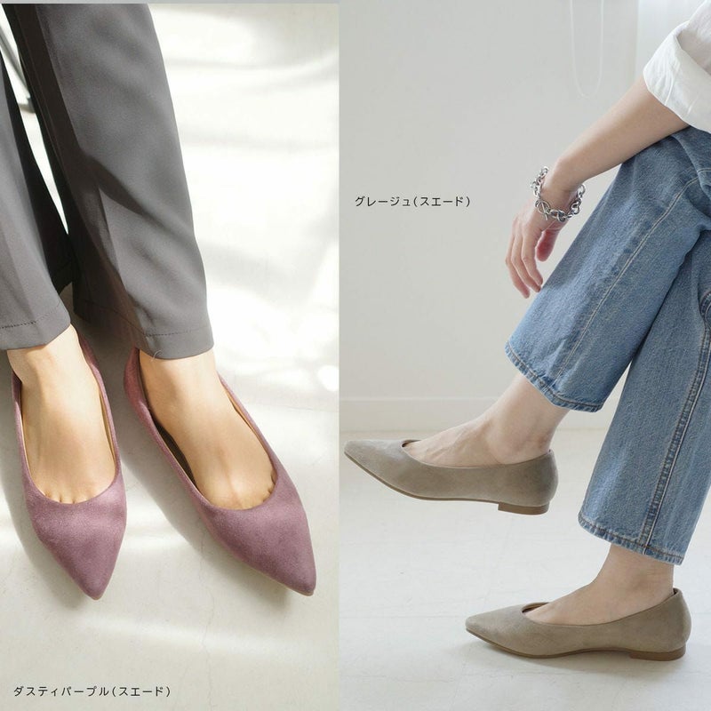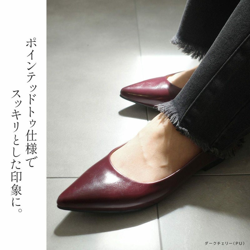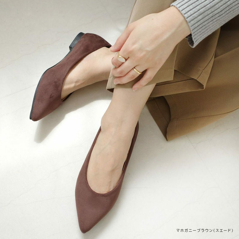 シャープで女らしく美脚に見せるポインテッドトゥ。ローヒールでありながらポインテッドで大人っぽくきれいめなフォルムで美脚に見せてくれる効果も。