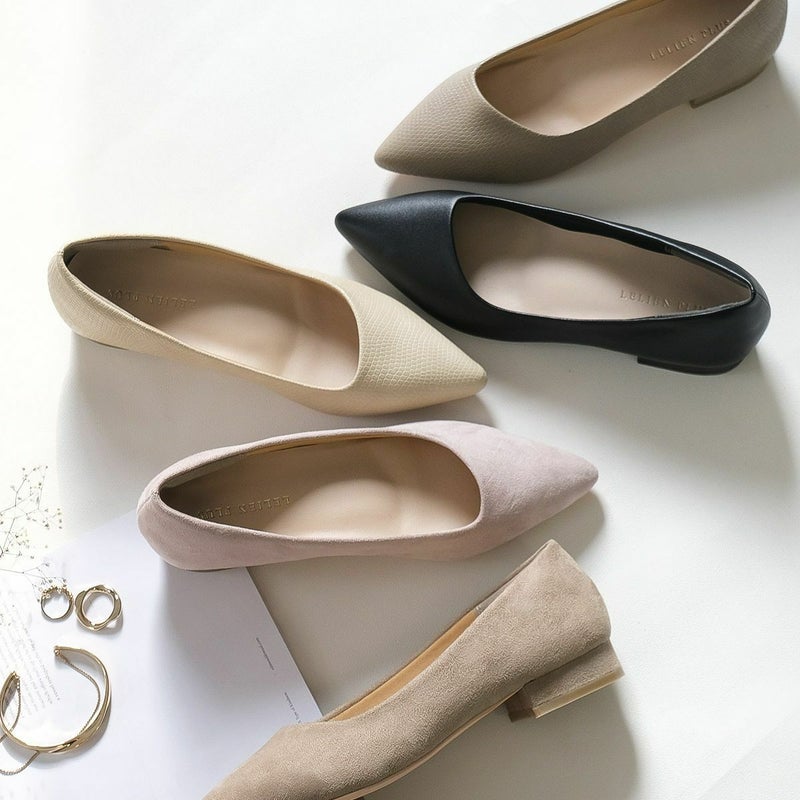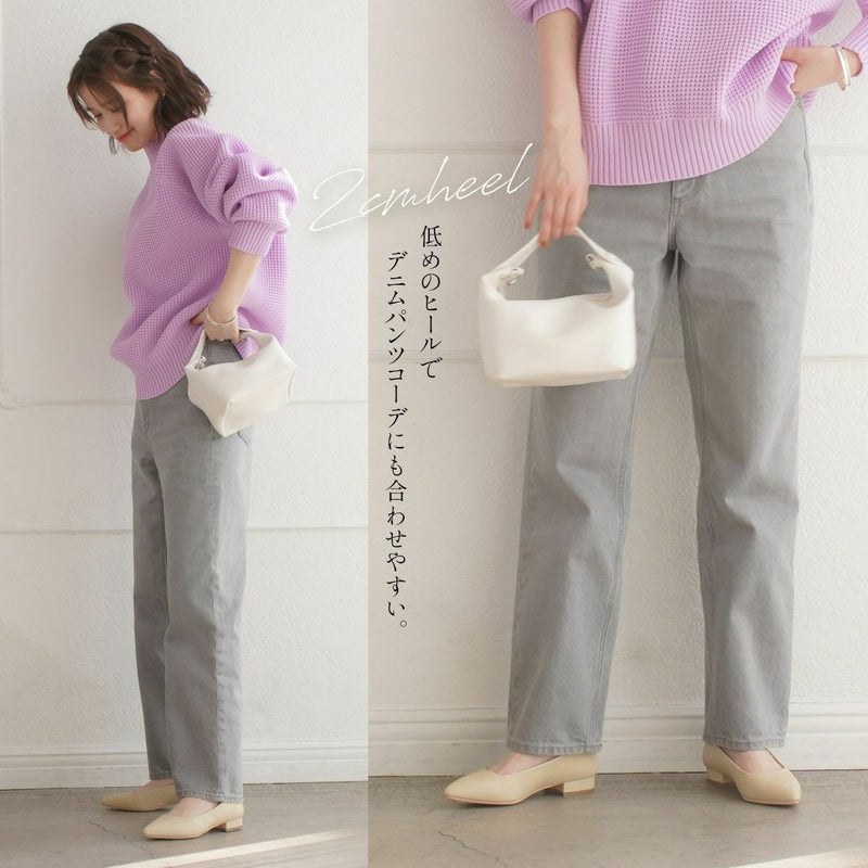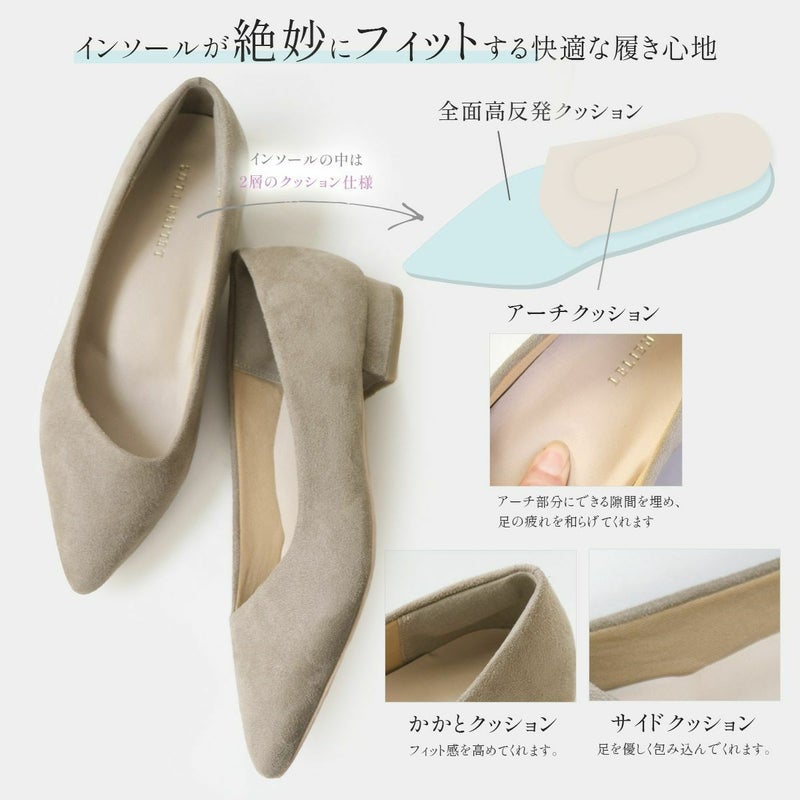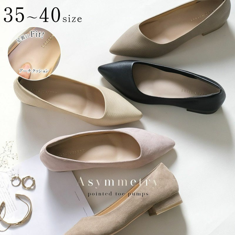 【在庫限り!特別価格!】ポインテッドトゥアシンメトリーカットローヒールパンプス レディース