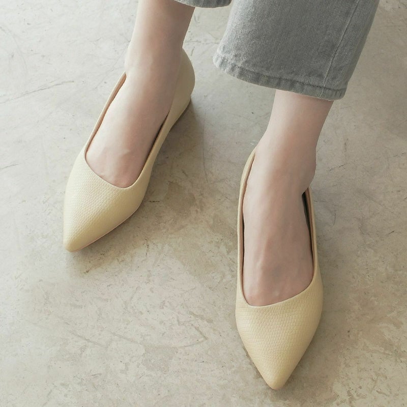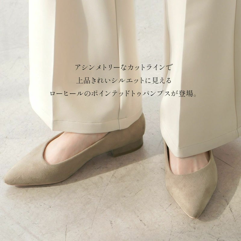 アシンメトリーなカットラインで足を綺麗に見せてくれるパンプス