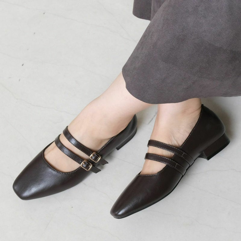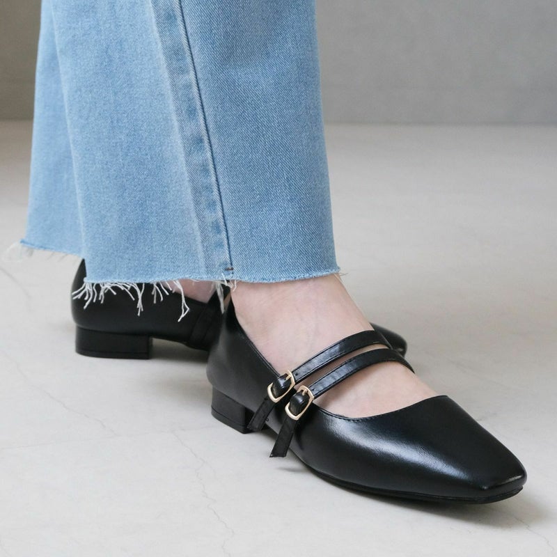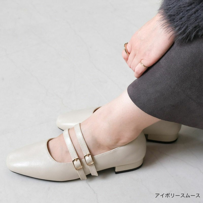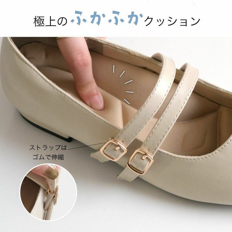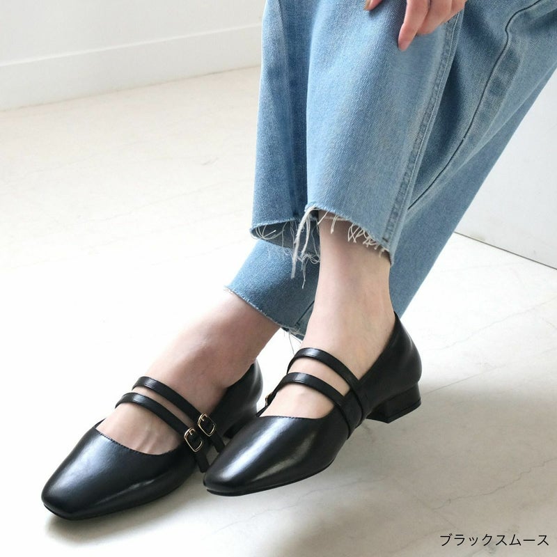 歩きやすく快適な履き心地のダブルストラップパンプス。