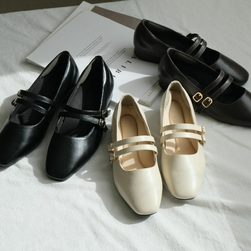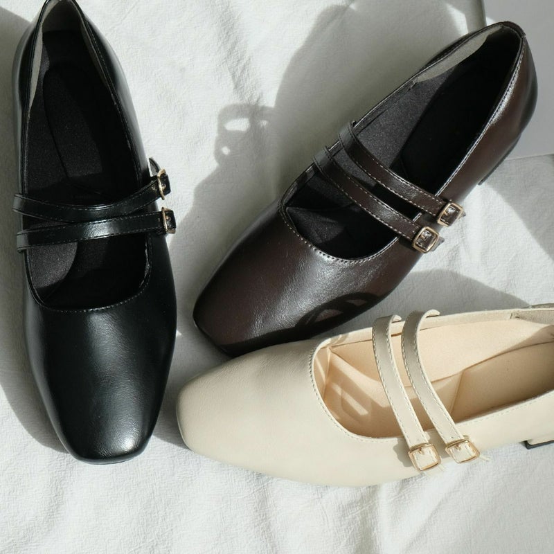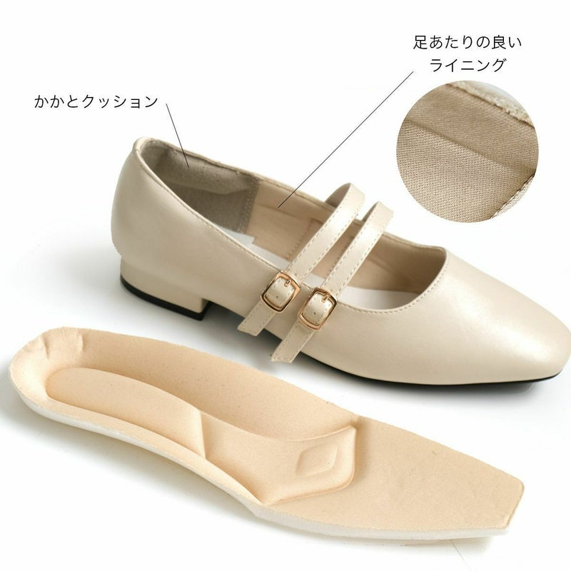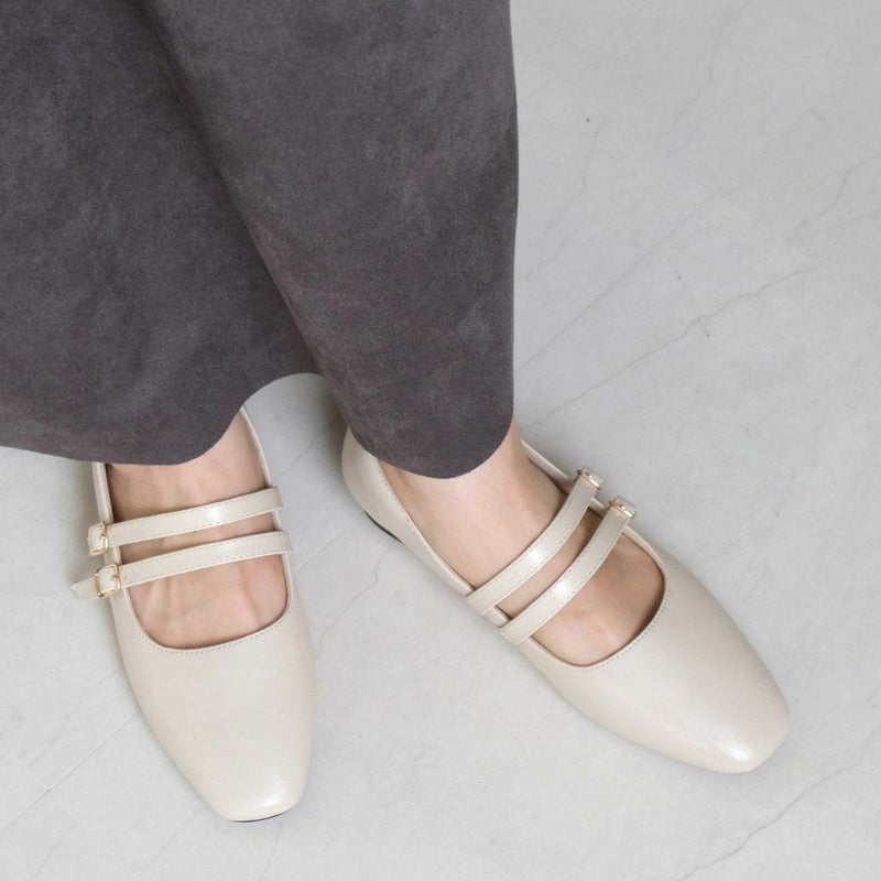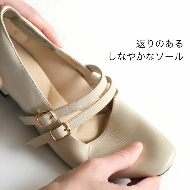 歩きやすく快適な履き心地のダブルストラップパンプス。