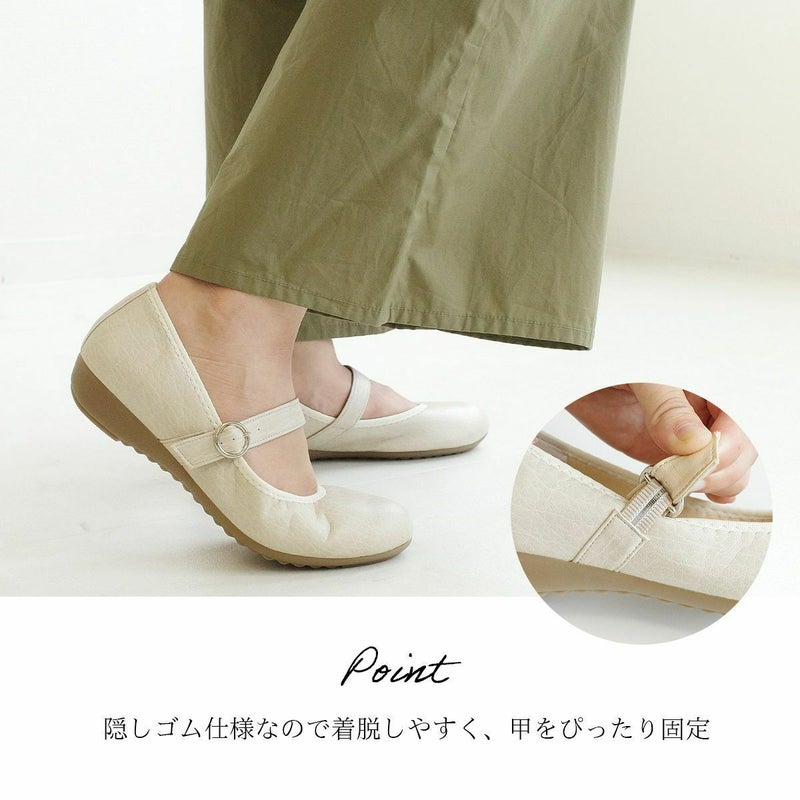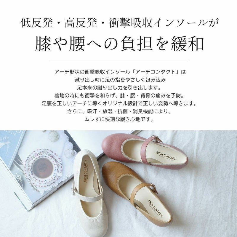 足裏を正しいアーチに導くストラップパンプスNASAの技術を応用した低反発ウレタンフォーム「マザータッチ」が衝撃を吸収。