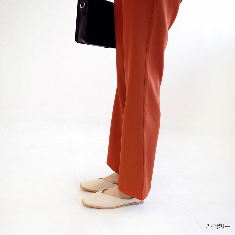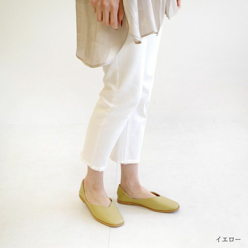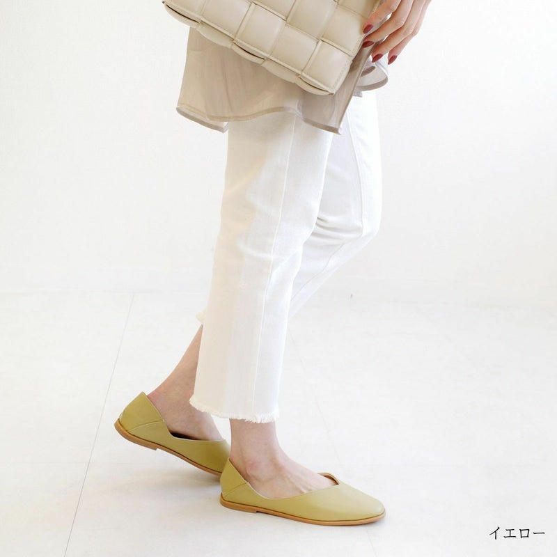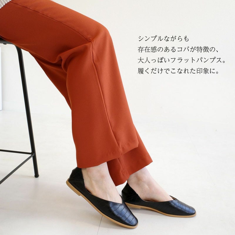 シンプルながらも存在感のあるコバが特徴のフラットパンプス。