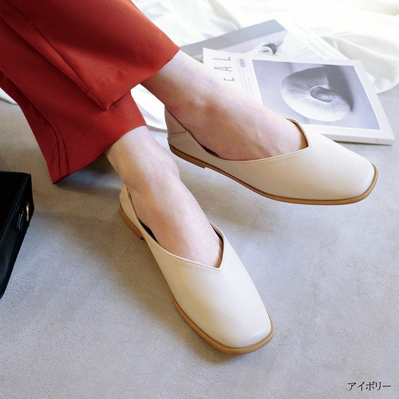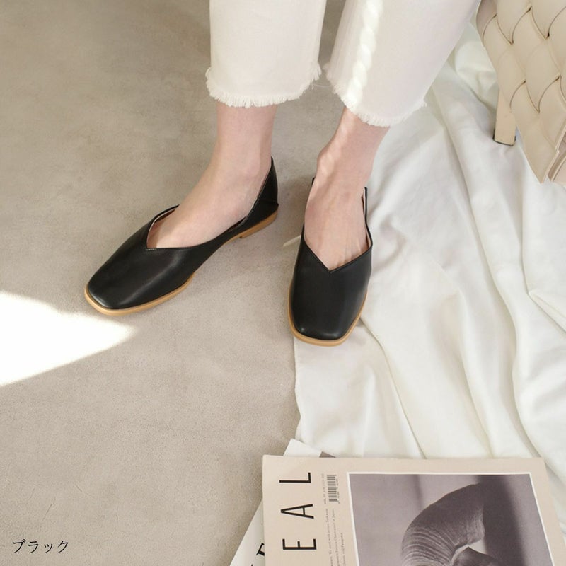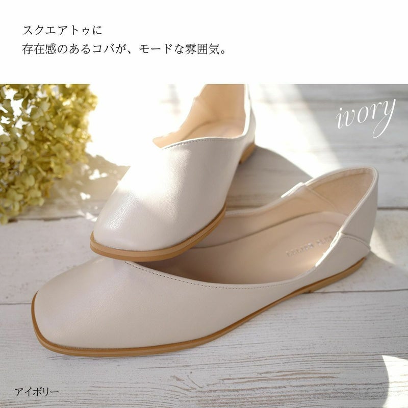 【返品交換不可】【在庫限り!特別価格!】スクエアトゥフラットパンプスコバ レディース