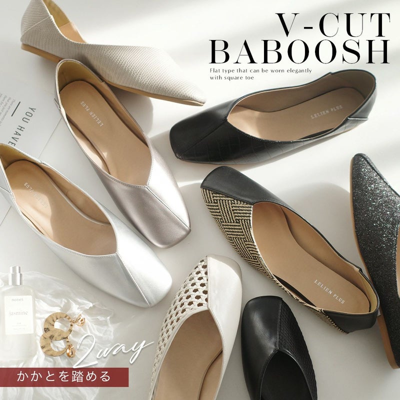 かかとは折れるデザインの為、バブーシュのように踏んでも履ける2WAY仕様。