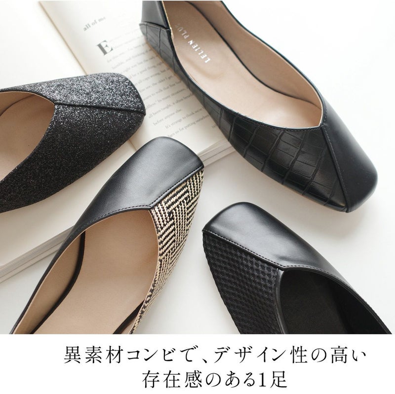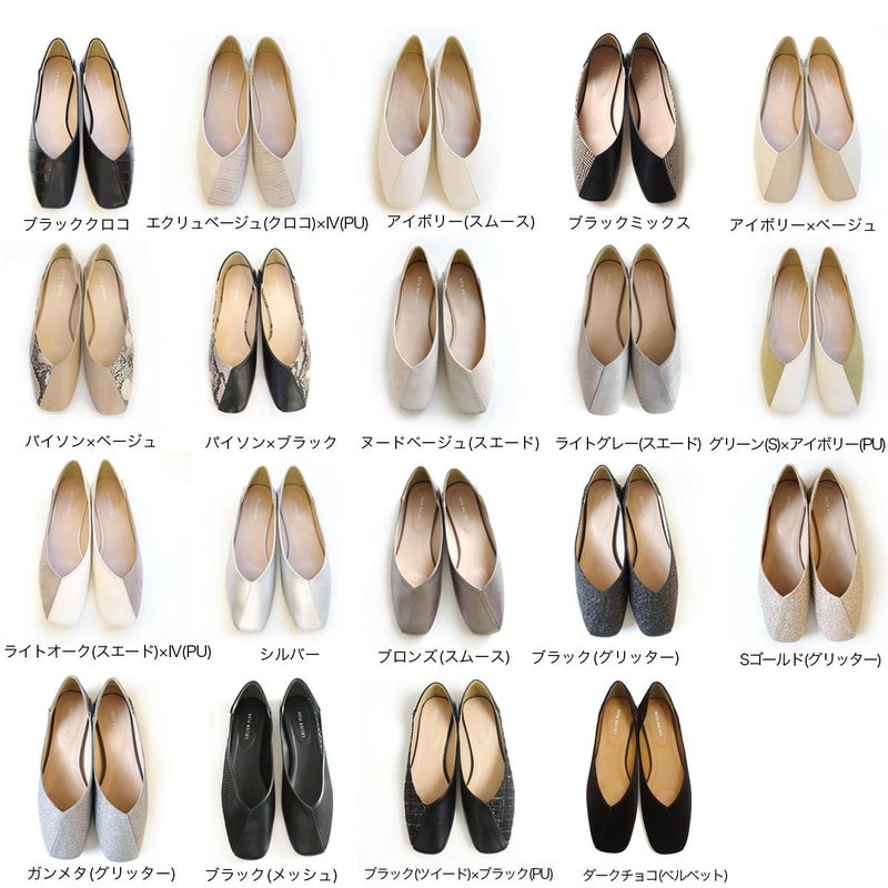 • ブラッククロコ、エクリュベージュ(クロコ)×IV(PU)、ブラックミックス、パイソン×ベージュ、ヌードベージュ(スエード)、ライトグレー(スエード)、ブラック(メッシュ)、エクリュベージュ(メッシュ)、ブラック(ツイード)×ブラック(PU)の柄は左右対称ではございません。