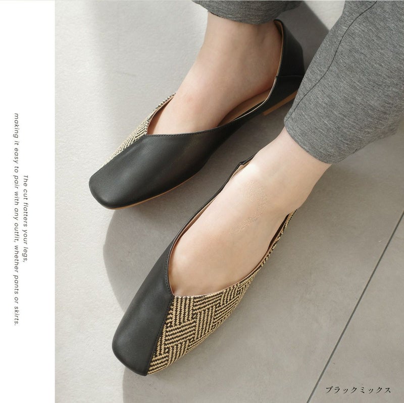 トレンドのスクエアトゥで上品に履けるフラットタイプさっと履けておしゃれに決まるぺたんこ靴!