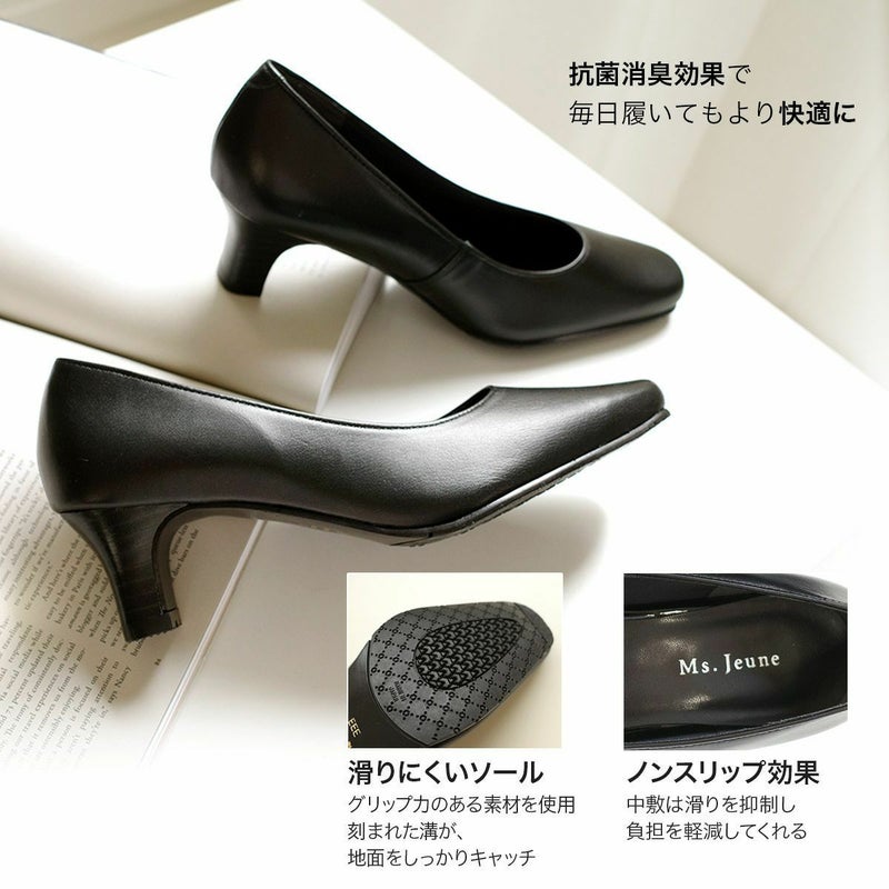 抗菌消臭効果で毎日履いても快適。美脚と歩きやすさを両立した5cmヒール。足に優しい3Eながらもスッキリとした美しいシルエット。