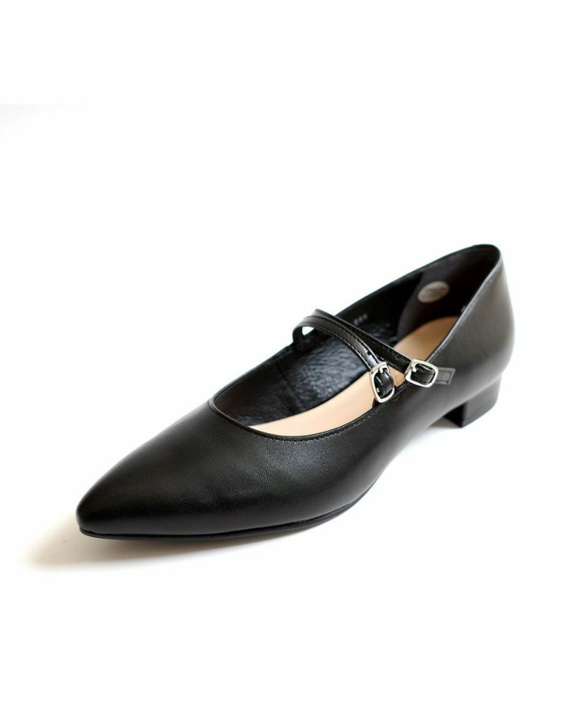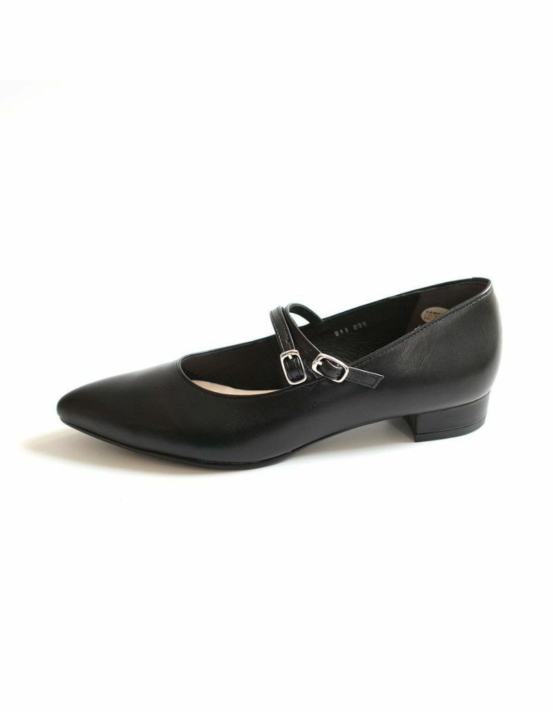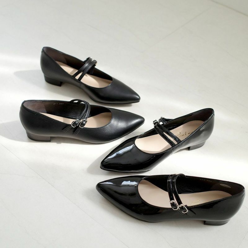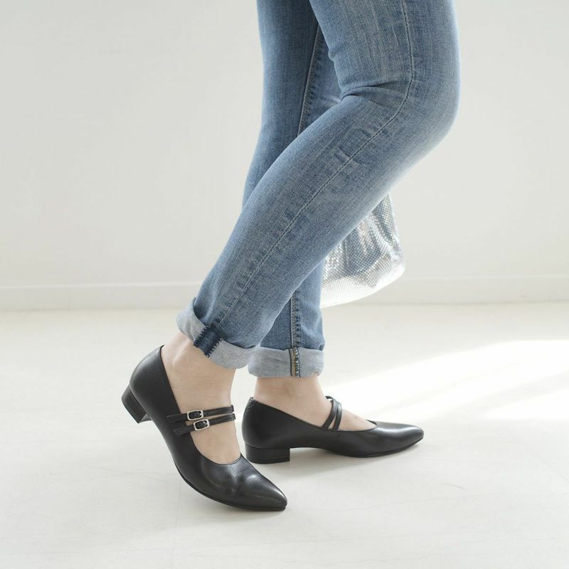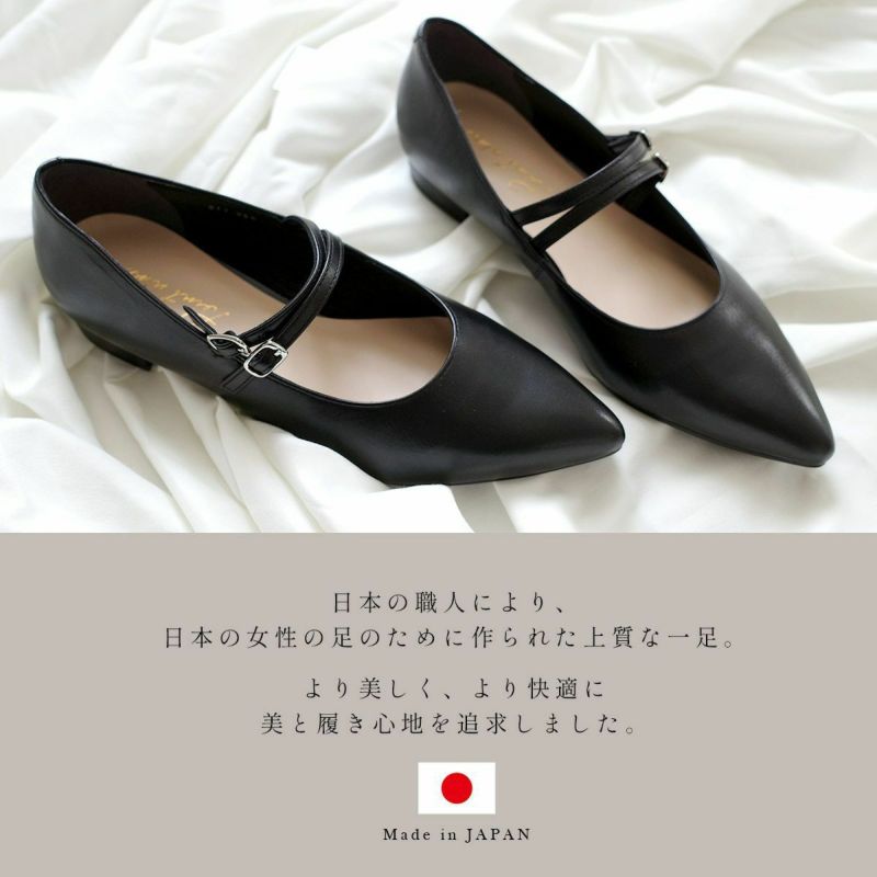 ストラップ付きローヒールパンプス日本製本革 レディース