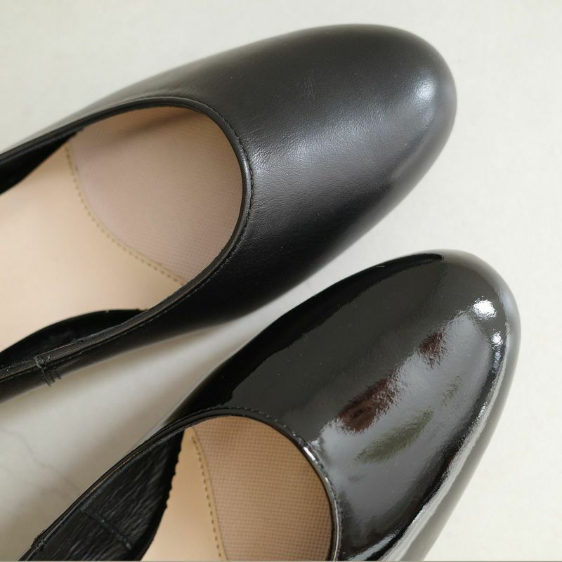 美脚ラウンドトゥパンプス日本製本革 レディース