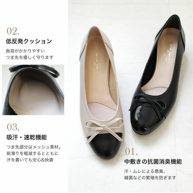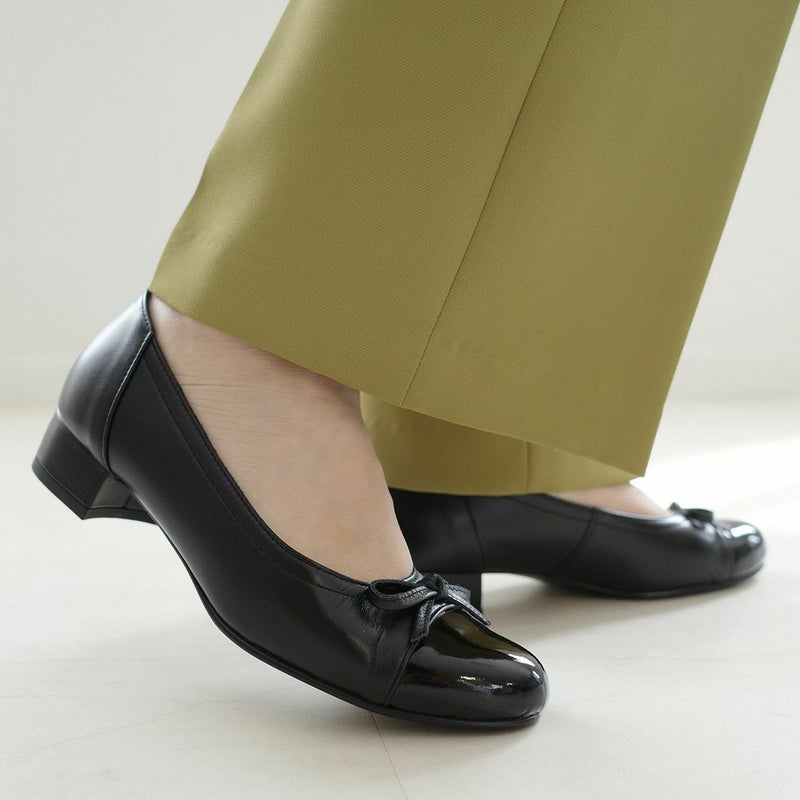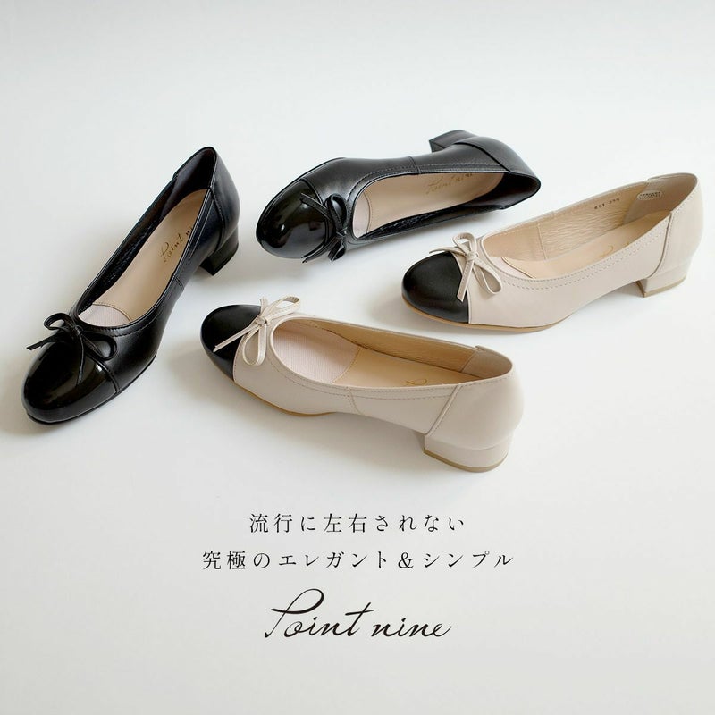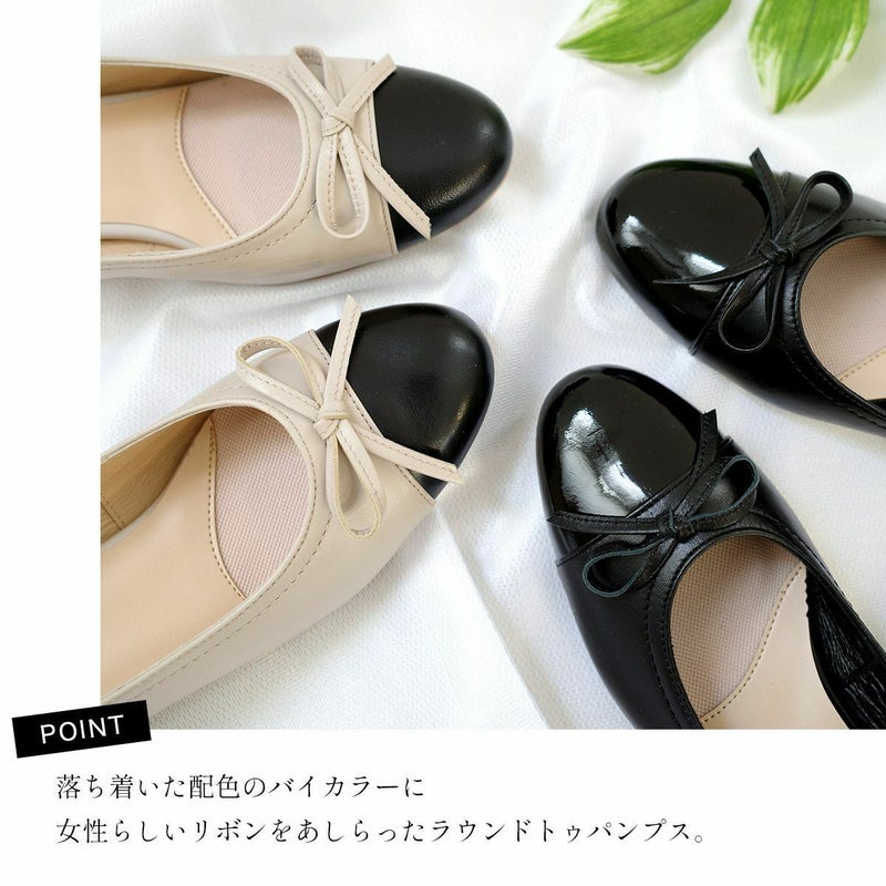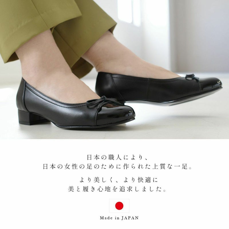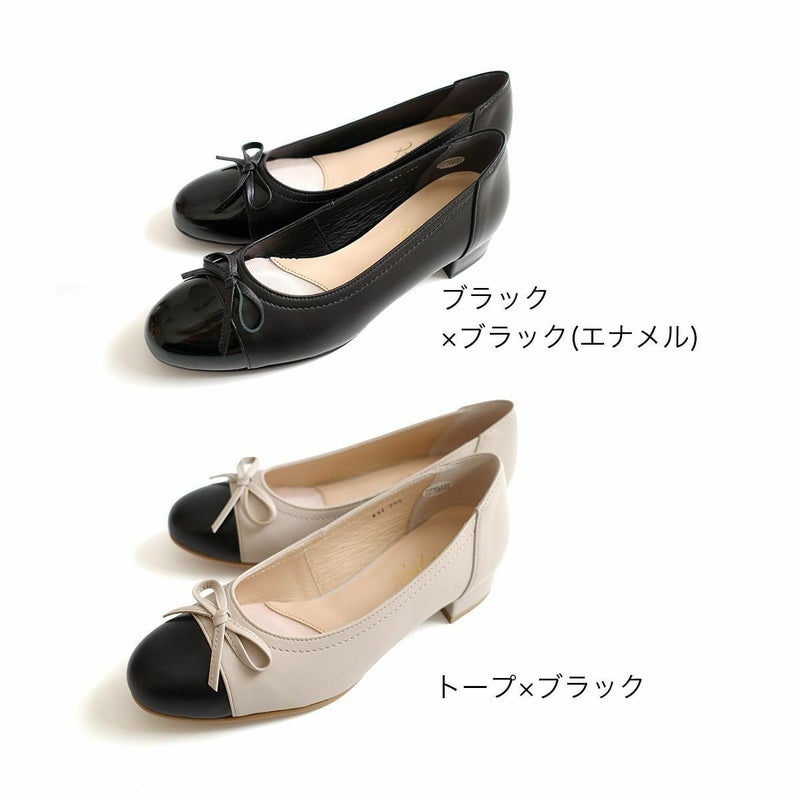 リボン付き美脚ラウンドトゥパンプス日本製本革 レディース