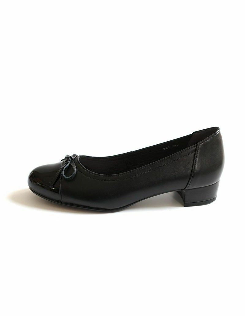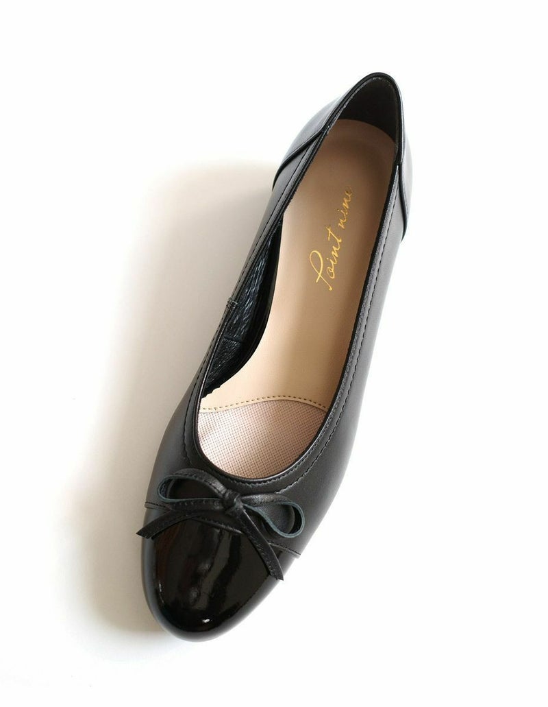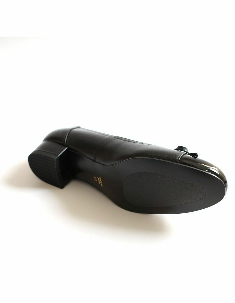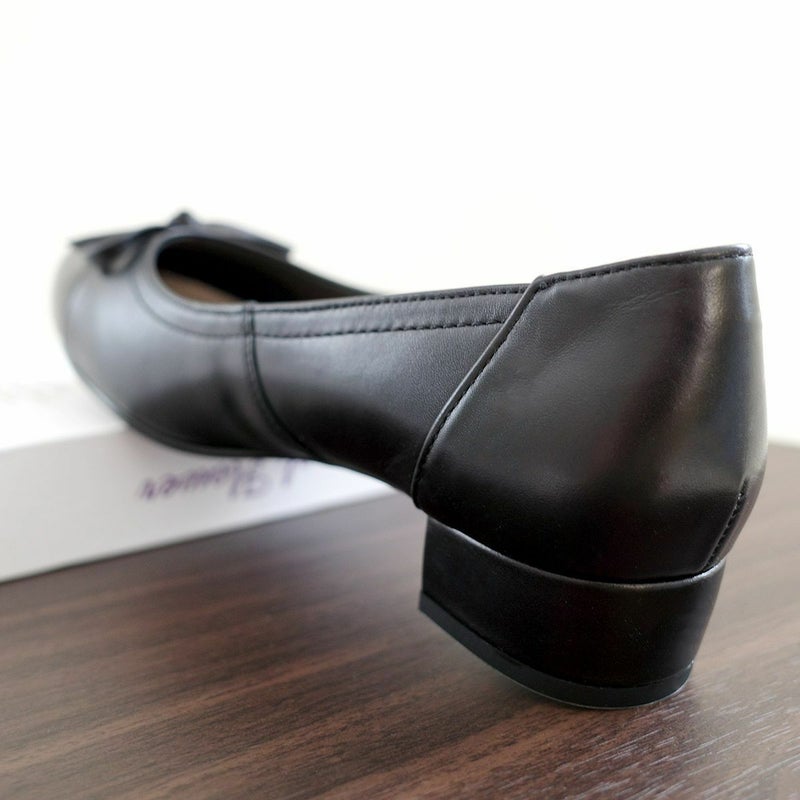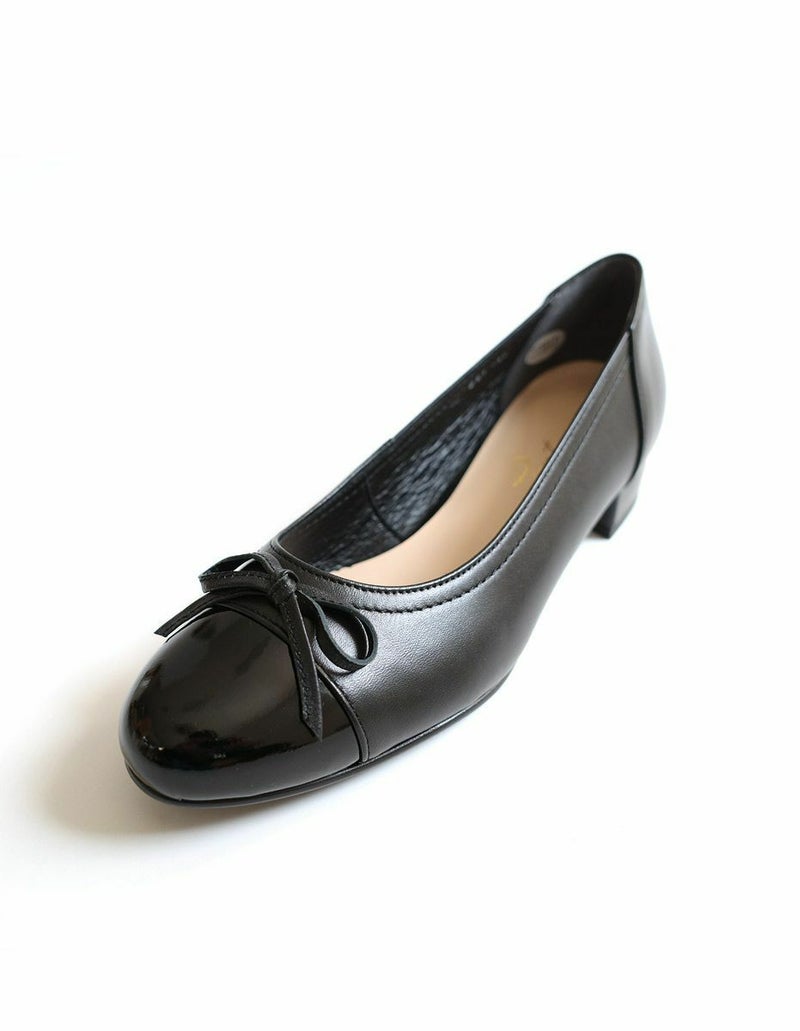 リボン付き美脚ラウンドトゥパンプス日本製本革 レディース