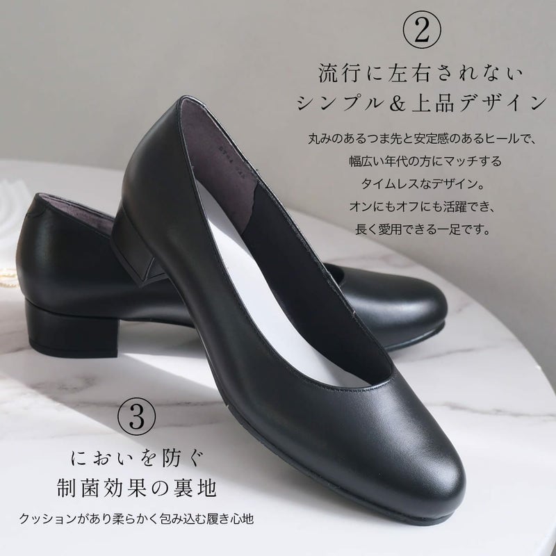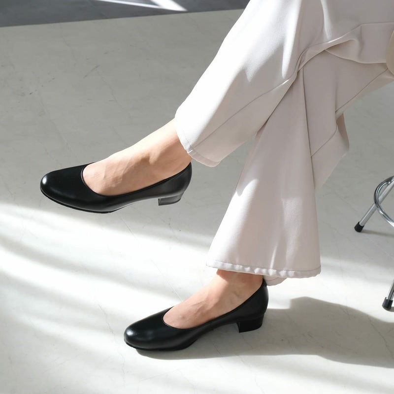 丸みのあるつま先と安定感のあるヒールで、幅広い年代の方にマッチするデザイン。