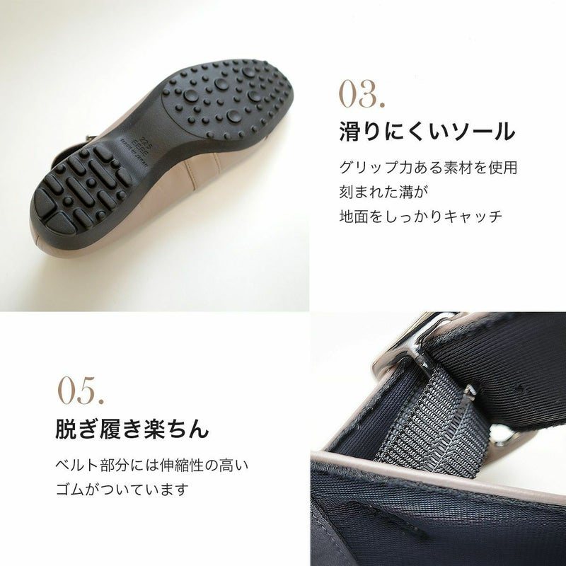 ゆったり4E設計。立体カップインソールでクッション性も抜群。人気商品「軽量快適ローファー日本製本革レディース(商品番号PO5803)」と同じ型のデザイン違い。