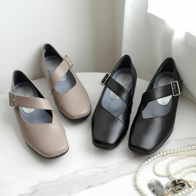 機能的で美しいデザイン。足首細見え3cmヒールの本革パンプス。